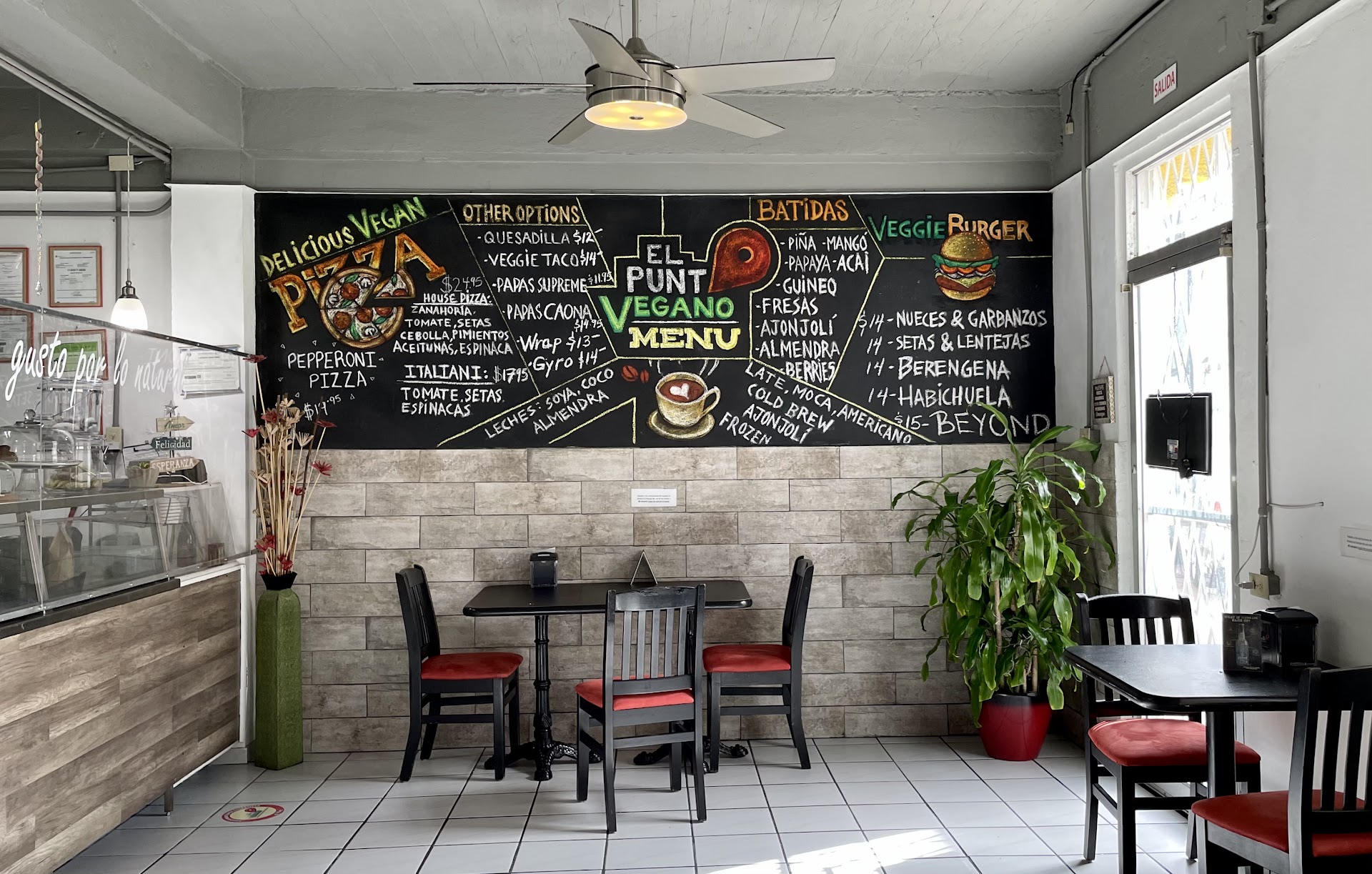 Read moreCozy, hidden gem tucked into a sweet little corner of San Juan! The food here is truly made with love, and it transcends beyond vegan; anyone will love the many dining options regardless of whether you are vegan or not. We stopped in rather late and were delighted to find them open! The staff here is so kind, caring and accommodating; they genuinely enjoy taking care of their patron’s needs and offering amazing service. We had the homemade vegan burger (with mushrooms and lentils) and supreme fries (loaded with vegan toppings), and it was delicious. We also tried a desert carrot cake and cafés con leche (de soja). Impeccable. You won’t even miss dairy or animal proteins. We also sampled the vegan tacos, and again, very impressive and tasty. They even served our dog a little dish of shredded carrots, which was so sweet and kind. The pizzas looked phenomenal, so we’ll try those next time. We highly recommend this awesome spot, and thank the owners/staff for offering such a healthy, fast and vegan-friendly experience. Come and try! You will be...