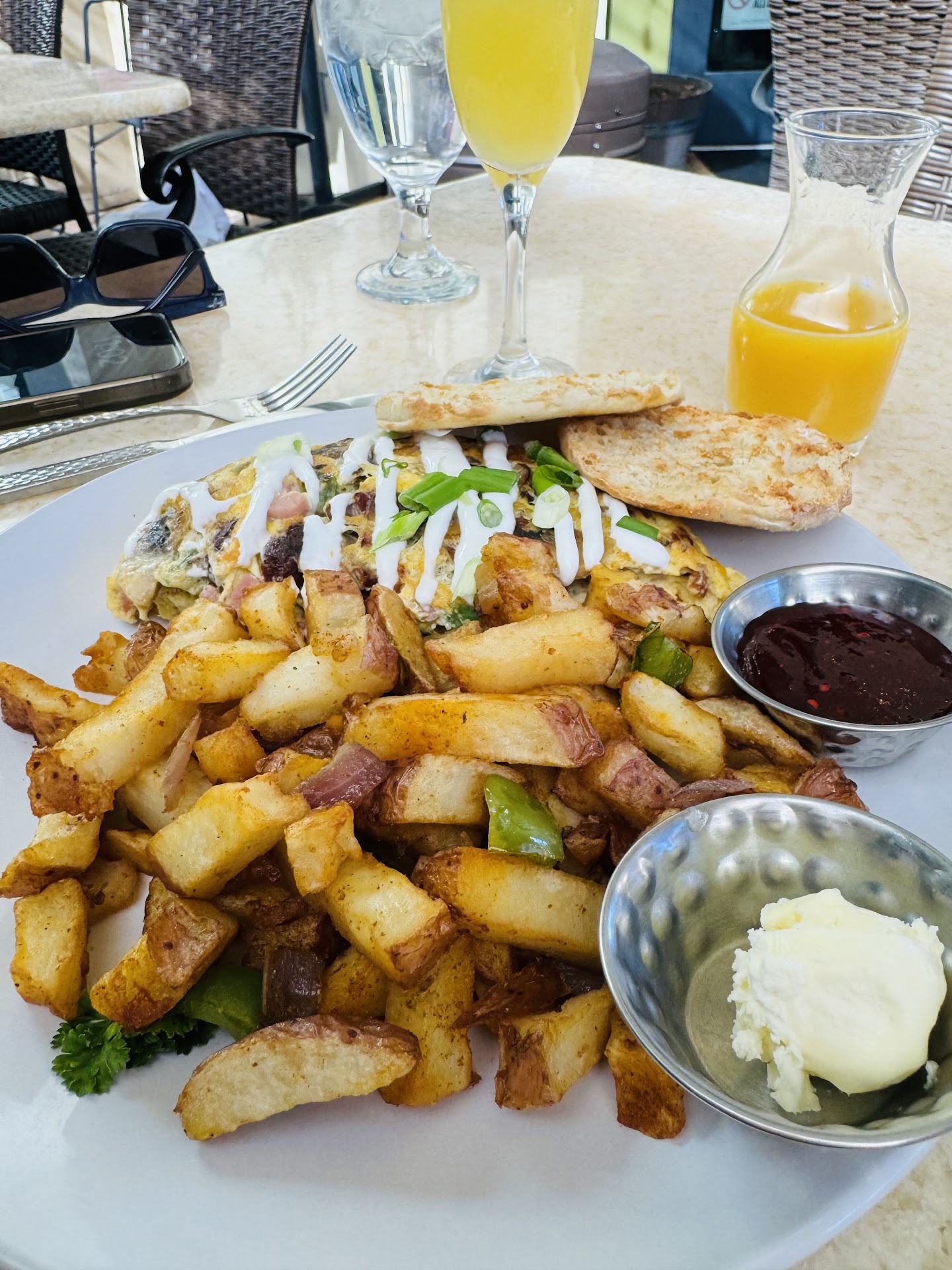 🍓 Belgian Waffles – These waffles were perfectly fluffy and topped with fresh strawberries, bananas, powdered sugar, and a touch of cinnamon. Simple, sweet, and satisfying.