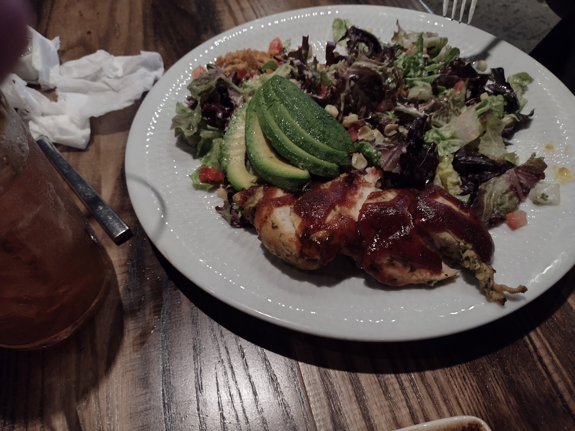 Started with the best corn chowder soup I have ever had. My Wife had the Bar b q chicken Cobb salad. I ordered nachos with Carnitas. It was all superb. The food was high quality, well presented, abundant ( the plate of nachos was so big, I told the server that they had their own atmosphere! LoL) and tasty as can be!