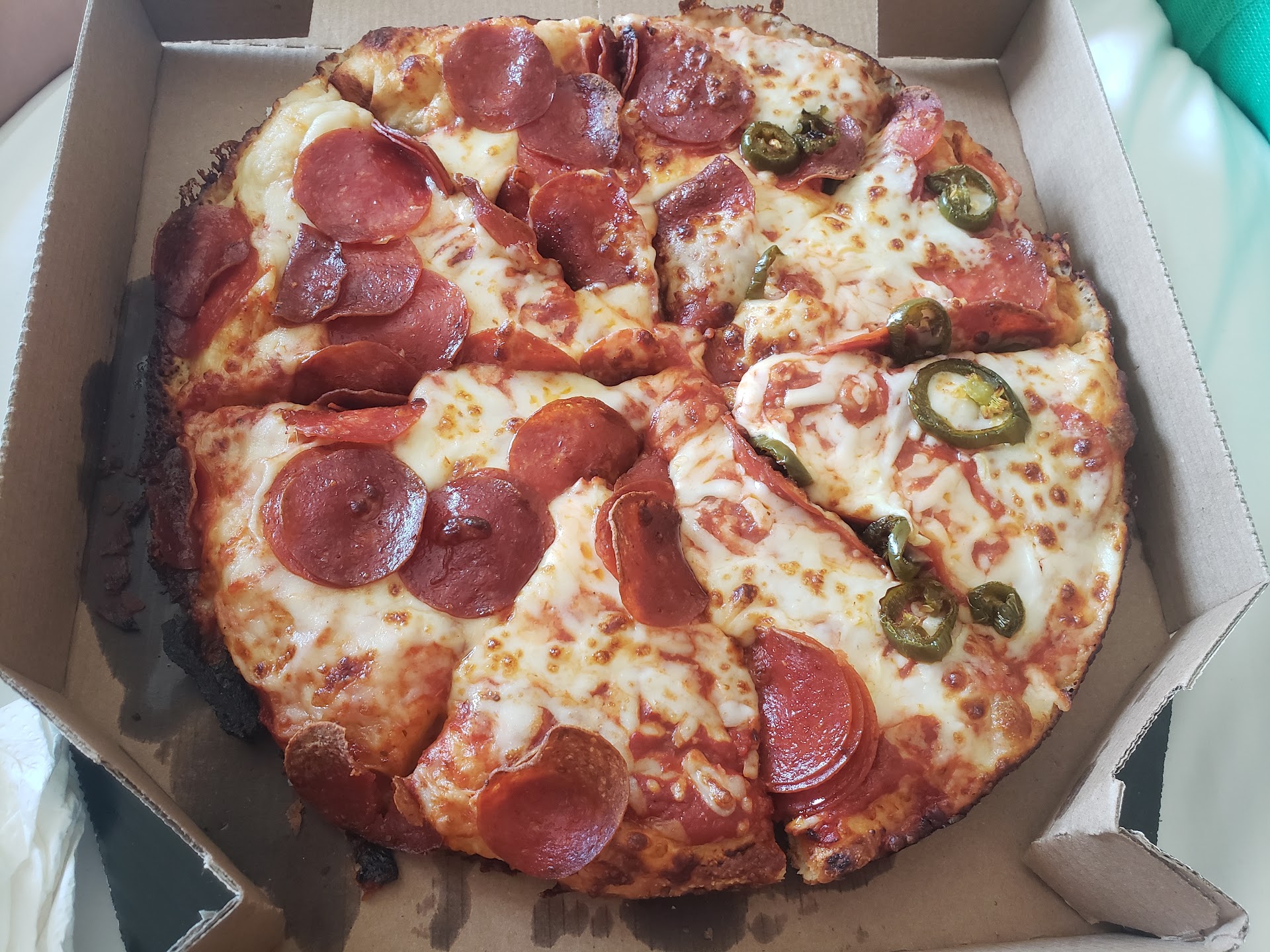 Read moreWe order from the closest Domino’s, which is on Date Palm Drive/Ramon. We pick up our order half the time, otherwise when we are flattened by the sun and heat here—which is the rest of the time—we gratefully opt to have it delivered to our door by their courteous delivery-persons. I always order the same delicious pie: sausage & pepperoni, with LIGHT (I. e.: a lesser amount of the—not the color of the!) cheese, WELL (I.e.: baked longer which for me improves the flavor!) DONE, medium or large size. They often have specials on, for instance say, two medium, two topping size pies and my other half will order himself a ‘Hawaiian’ pie, which I find is a heresy, such an odd combination but to each his or her own they at all great tasting, as is the tastily-dressed Caesar salad, very good, the garlic bread bites and occasionally I like to order the philly-cheese steak sandwich, very tasty too. Great...
