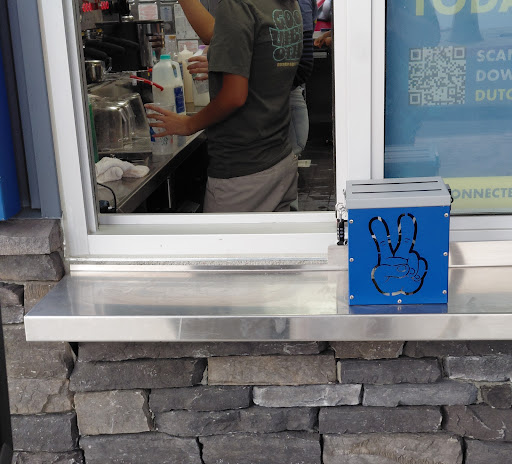 I didn't even think this new Dutch Bros location in Cathedral City deserves the one star i gave it. The moment I pulled up, I was shocked by what I saw. Every young adult employee was wearing non-slip shoes and one girl that was in the drive thru was wearing Jesus sandals.There wasn’t a single uniform in sight. From the purple hair to the mismatched outfits, it looked more like a high school hangout than a business. The lack of hygiene, professionalism, and attention to basic cleanliness was unacceptable. I was genuinely disgusted and will not be returning. Then things went from bad to worse. Someone dropped a drink, and 2 employees wiped off their shoes with paper towels, and one of those employees — a big guy — tried to toss the paper towel into the trash receptacle like he was shooting hoops for the NBA he missed of course. The paper towel landed right on the drink prep area, sitting there next to the exposed ice bucket. I had plenty of time to take a picture because no one bothered to pick it up and from what I could tell, the employee never even washed his hands afterward. At this point, I almost gagged. I was boycotting Starbucks, but after this experience, I might run straight back into those burning coffee flames of hell. Cleanliness, professionalism, and basic food safety — all missing in action at this Dutch Bros. This big guy even blocked the window like an eclipse, hiding the disaster from view or i would've gotten more disastrous...