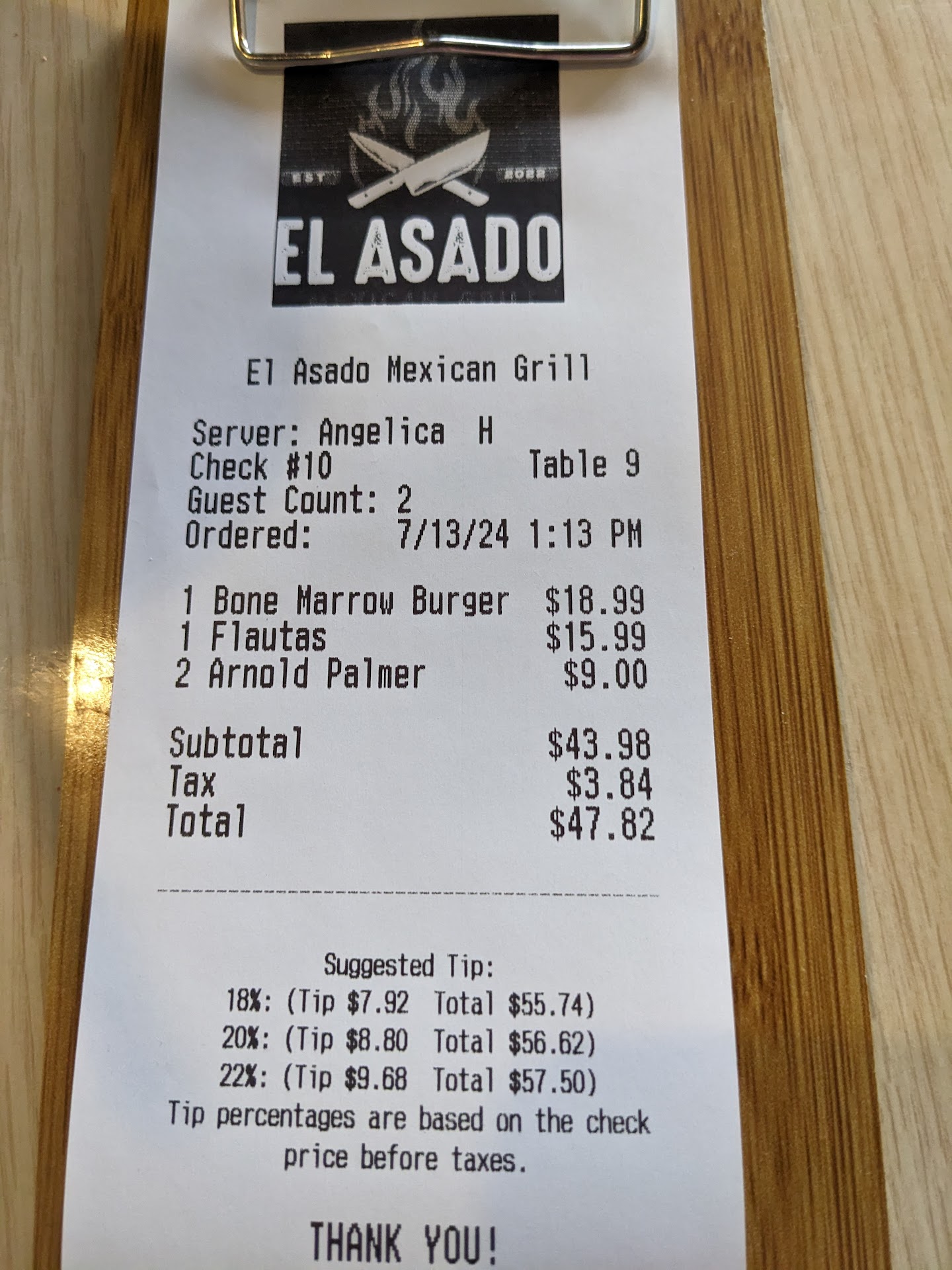 Read moreStarted by checking out the meat market. Small grocery items with a diverse selection of peppers, tomatillios etc. small meat case with some nice cuts. I saw some shin of beef that would be great for Osco Buco... I don't usually find that at the larger grocery stores... The restaurant next door was also a pleasant surprise. Clean and OK decor with a large menu of some unique and interesting dishes. It was hard to choose. Everything coming out of the kitchen looked delicious. I ordered a marrow burger. Hamburger with grilled onions, cheese and grilled tomato with a bun rubbed with marrow. Served with fries and a split open bone with marrow... unexpected and delicious. My dining partner ordered the flautas. He said they were excellent! Very much looking forward to going back and trying some of the other items on the menu. One drawback is they only have a beer and wine license so no alcohol/margaritas. Their homemade salsa had a kick and...