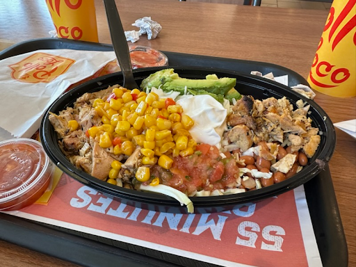 The food? 👎Bad news, the chicken I was given was overdone. The skin was like paper, and the meat was dry. It's really too bad, I was hoping for good things after the burrito. The corn is tasty, plump, and juicy. The Mac n cheese, however, had been sitting in sauce to the point that the noodles are mush and the sauce has a powder undertone.