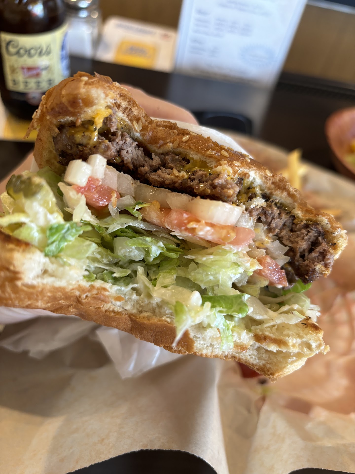 And it was one of the better burgers in town. Fresh beef, smashed, cooked med rare and they girl bartending was kinda sassy which I’m down with. Supposed George was an a-hole so just beware. It’s an authentic experience, wood paneling, cheap beer decorations, 50’s style refrigerators, and booths that haven’t been reupholstered since the fridges were installed. Can you tell I...