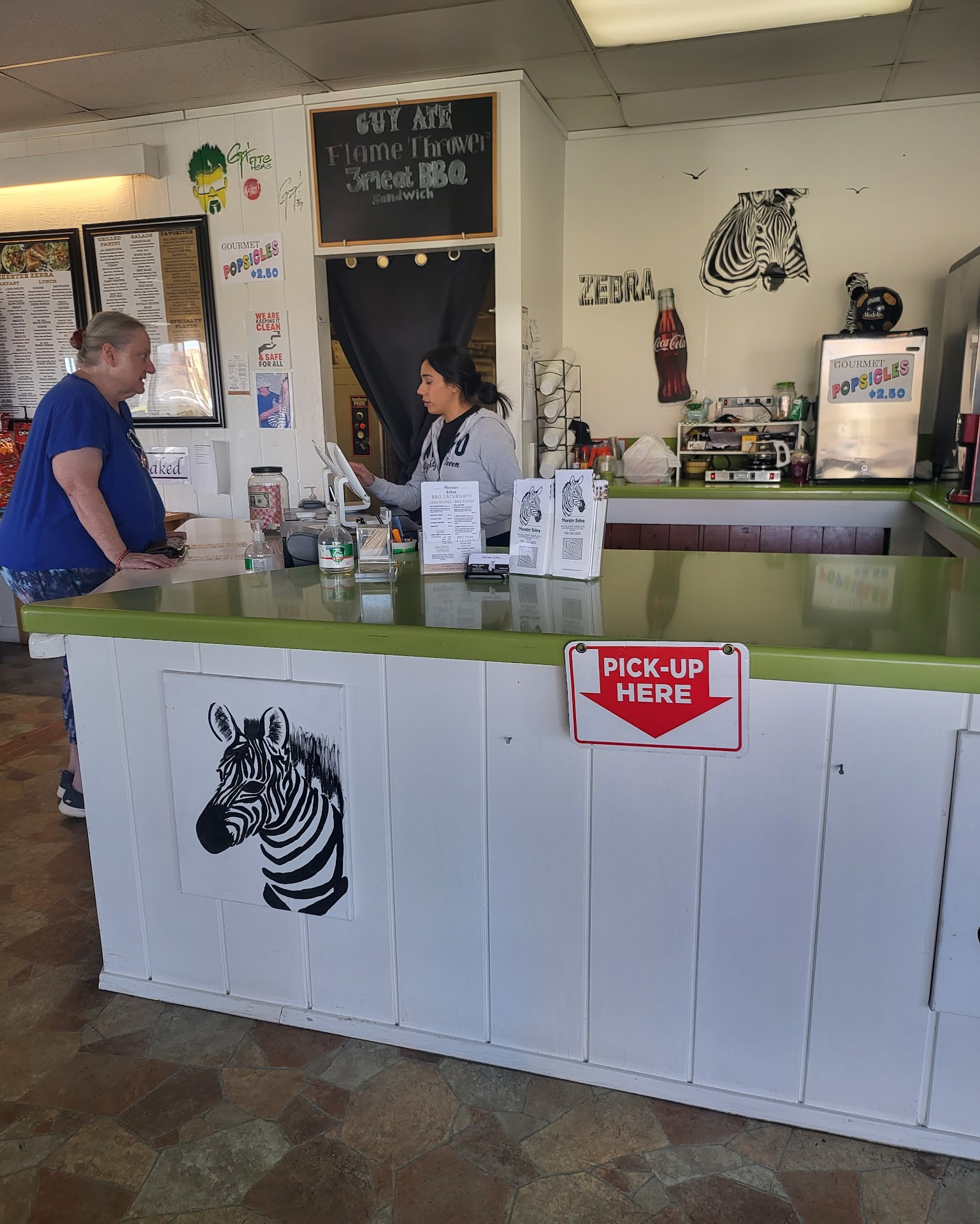 Let me just say that my husband and I like two things when we go out...good food AND great service. Today, we had both. After taking our motorhome in for service, we decided to try Meester Zebra. We are so happy we did! It's was early so we both ordered breakfast. We had the pancake breakfast that included eggs your style, bacon, ham, or sausage. My husband had bacon and I had ham. Kyle prefers his bacon "extra crispy" which usually is brought out burnt. Not this time. His bacon looked as if I cooked it myself. I chose ham, the best smokey ham quarter slice i've had in a very long time. If you're a ham eater, you understand what I mean. The coffee was as good or better than any coffee shop! And I know my coffee. There menu is large and there is something for everyone. One more thing...the service was outstanding. One of the co-owners "Jr." was our server. He gave us a history of the restaurant and the best service. He is knowledgeable and friendly. They serve bbq on Saturday and we were told they always run out...so please call in your order. If you're ever in Cat City, try Meester Zebra, you won't be...