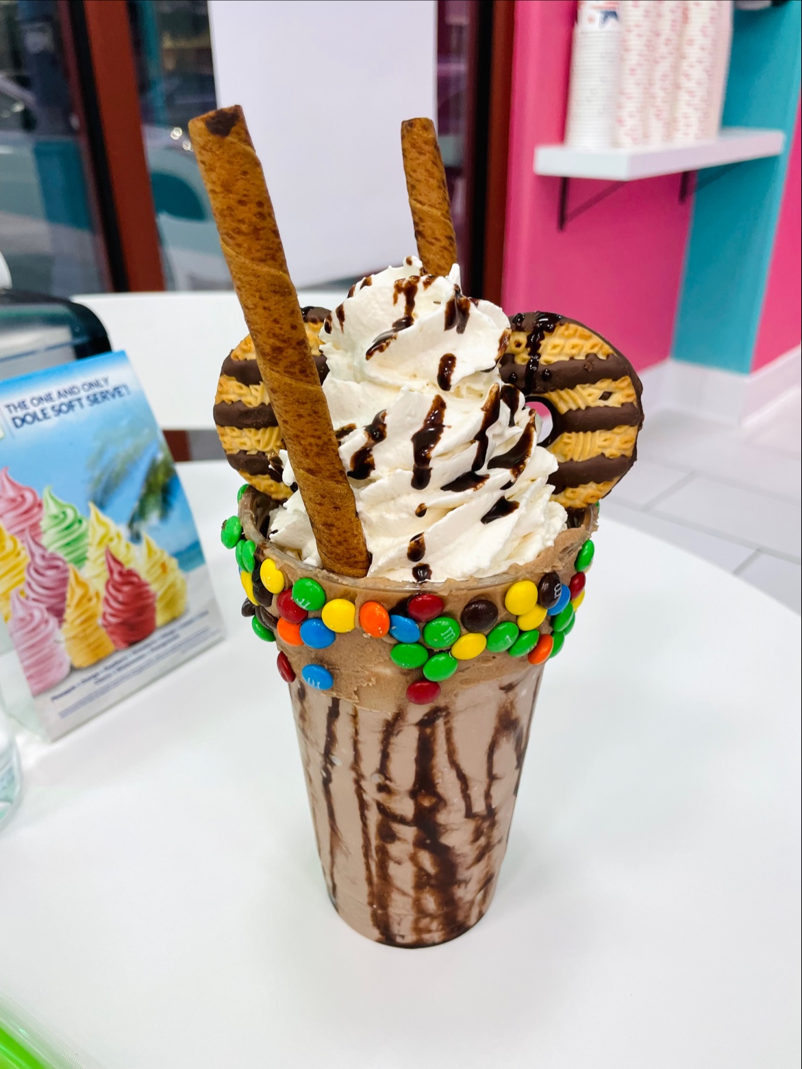 Read moreThere's A LOT to choose from on the menu! I decided to go for the fro yo (Dole whip), as that looked like the cheapest thing. I didn't get much at all (not even half-filled my cup), but the price came out to the same as if I had gotten a scoop of ice cream, so in the end it didn't matter. I'm sure the shakes are delicious, but the price tag was just too much for me. My 4-year-old loved the colored plastic spoons and the polka dot bowls. No samples allowed of the fro yo :( Fun splash pad (even when the water is off) nearby to sit...