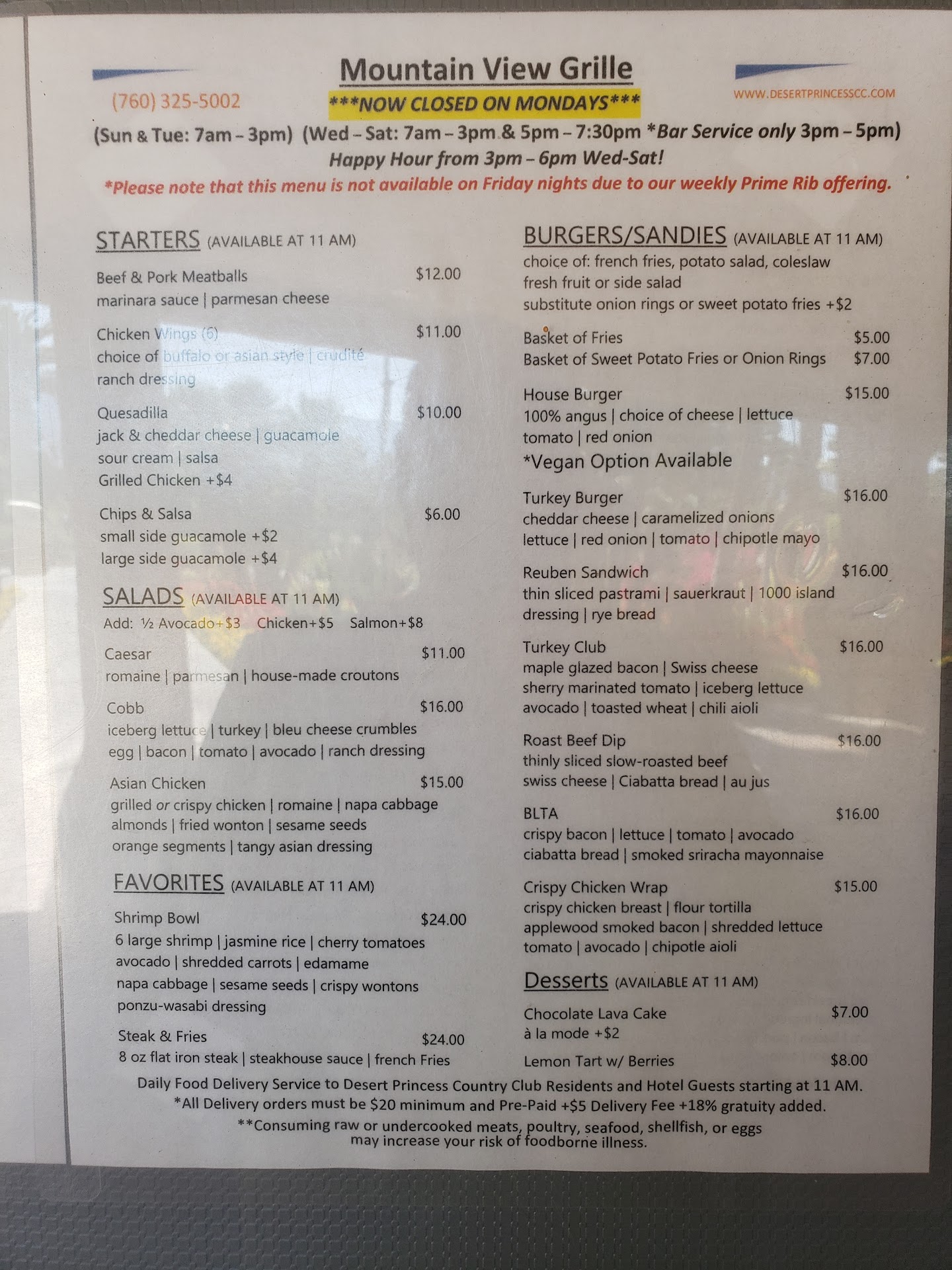 Read moreOk… so this place is just fantastic! Epic in every way. My darling and I went there for dinner, and we were so impressed, we went back the next day for lunch. Every dish we had was just wonderful. Beef Dip, Shrimp Poke Bowl, Club Sandwich and a Rueben Sandwich… All Incredible!!! But the most astounding thing is how wonderfully friendly, accommodating, welcoming, and just darn professional, every staff member we met were. Managers… Felicia and Kenneth should be proud of this sincere staff! Ellie and Leslie, were our servers, both excellent. Saul and Fransisco were support staff and deserve a commendation for their truly excellent service, and last but definitely not least was the genuine and sincerely welcoming smile of Daniella in the bar. I am happy to write this review because they made our two visits memorable. We will definitely be back! Thank you Mountain View Grille. You really hit it out of...