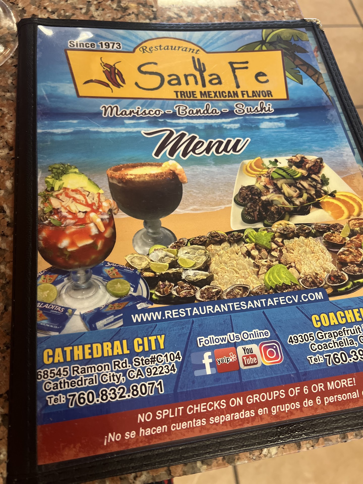 Β Β Β Read moreGreat service and fresh seafood. Wifey and I were thinking of having a not so heavy dinner and fresh. We landed here at Santa Fe, we both have the shrimp cocktail with a couple of additions, mine shrimp plus octopus, wifey's shrimp octopus and avulon, everything was fresh, the octopus was very tender. We had a couple of their signature micheladas and they really hot the spot. Lately we had try micheladas along a few places and their michi mix sometimes it's to heavy and you can't really enjoy more than 1 because their mix is to thick. However here at Santa Fe, they flavorful and light not to heavy on the mix which makes you drink a few, also did I mention the michelada it's garnish with shrimp? They are!! There several entree that cought my attention we will definitely...