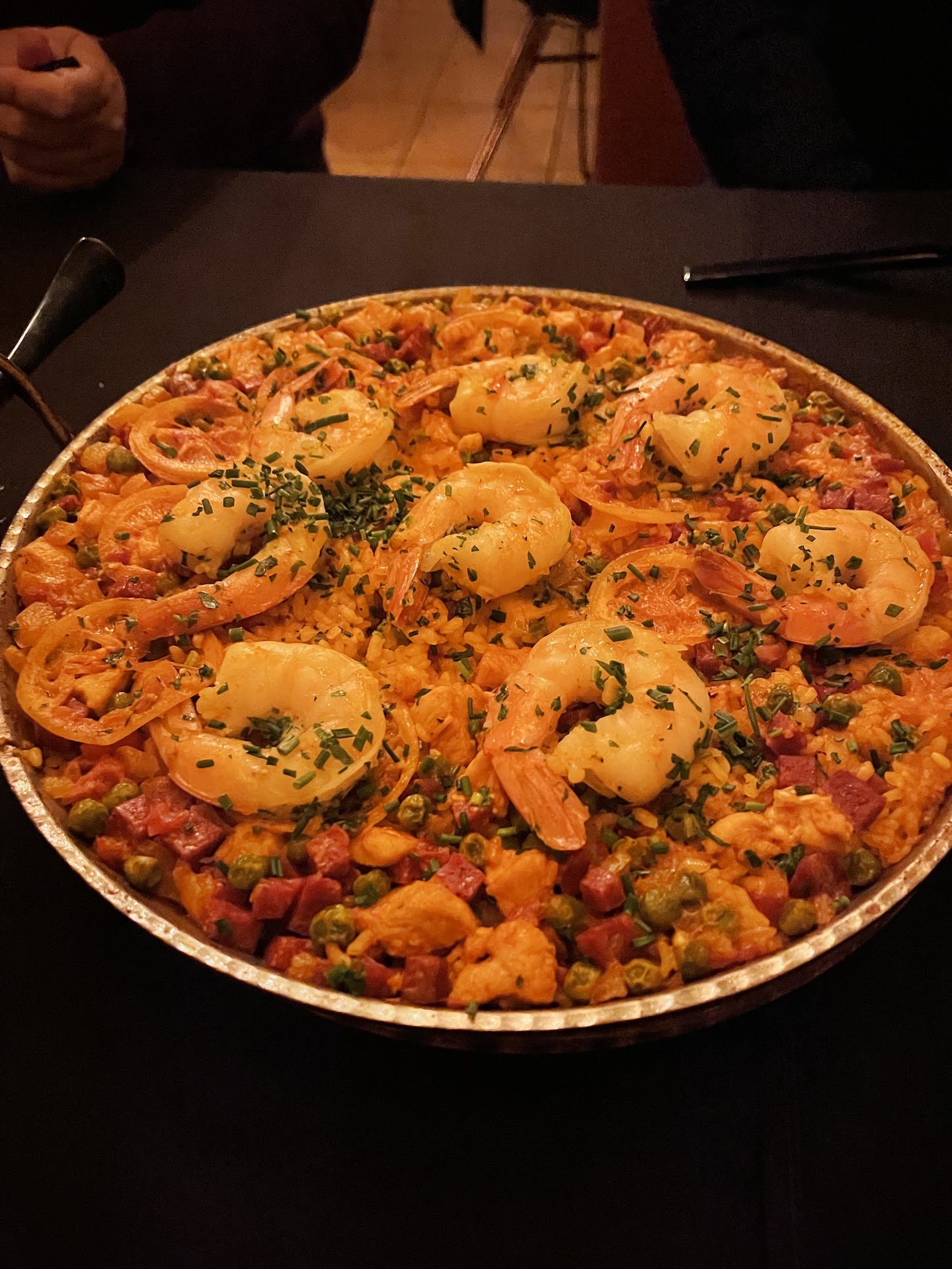 Walk donât run to this restaurant. Itâs a hidden gem with incredible food. We immediately ordered the Chicken, Shrimp and Sausage paella knowing it would take 40 minutes. While we waited we had a very tasty cocktail and ordered some tapas. Croquetes de Champion (little crispy crust on the outside and buttery tender mushroom on inside). Know idea how they managed to get it crispy and moist at the same time. We LOVED the boqueribes en diablos (anchovies sitting in a beyond description sauce on crostinis) , We also had the pollo a la brasa con chorizo (chicken wrapped around chorizo on a sauce with a salad that I simply canât describe how flavorful it was). We ordered a bottle of Spanish Roija at only $44. The paella was simply the best weâve ever had. Massive FRESH shrimp, chunks of chicken, slices of sausage, perhaps some ham and such well balanced spices. For desert, they make their own cheesecake which thank goodness wasnât the American sweet thick dense NY style. It was light and fluffy and delicious. Best meal in...
