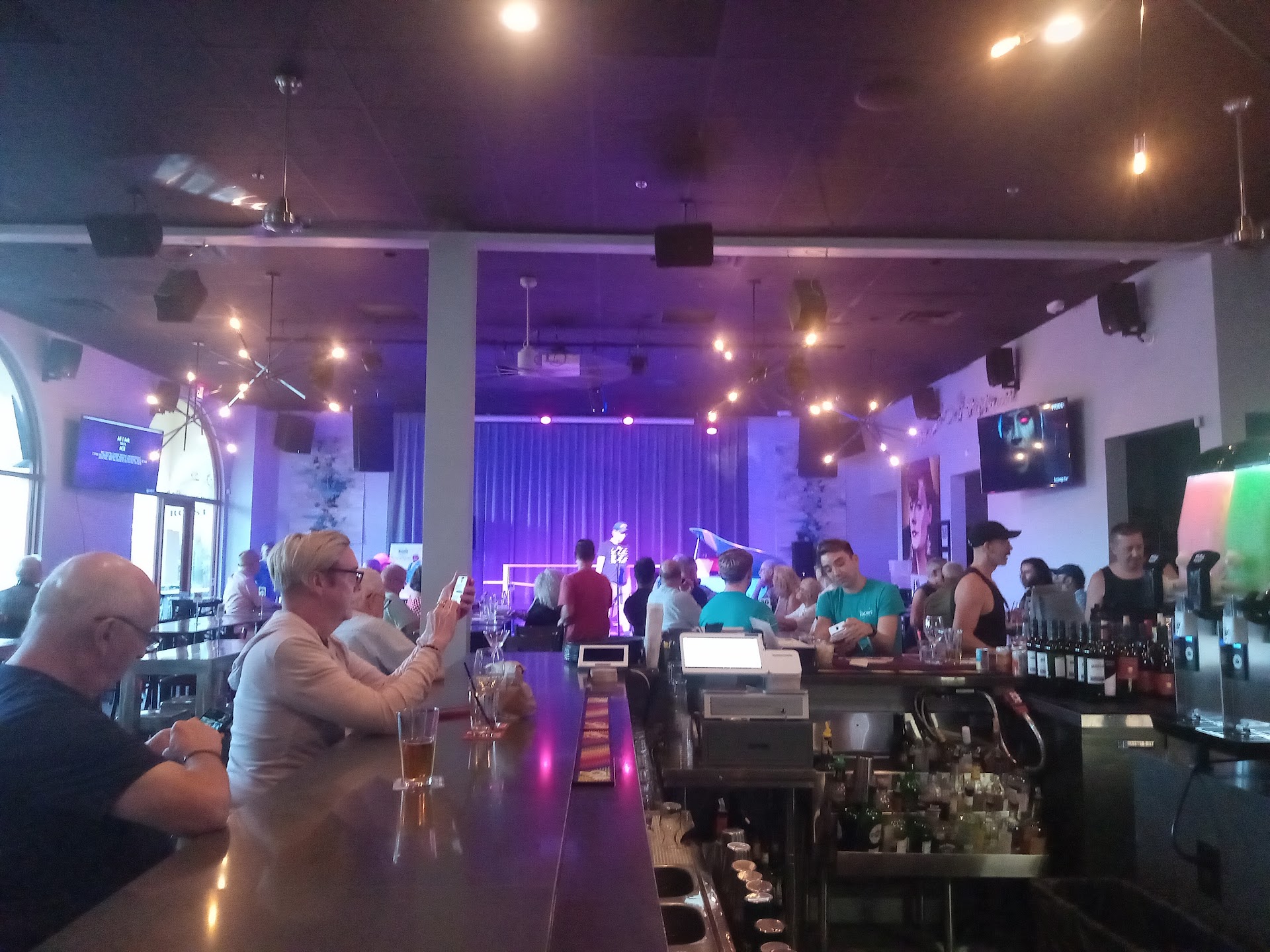 The Roost is a very unique gay bar. Bright interior, big windows, open patios on both sides, and a newly renovated stage for entertainment. Come for drinks and then have dinner, though there is no real kitchen here. There is an Italian restaurant next door, with menus, so you can order dinner and it's brought to your table. This place is growing in popularity and is not always the best for a drop-in-drink. Sometimes the place is full because of big groups or entertainment. When it is busy, it is hard for the small staff to keep up. Overall, it's a great place to meet your friends for happy hour, but not so great if you are single and want to mingle, as everything is table-oriented and everyone is already in...