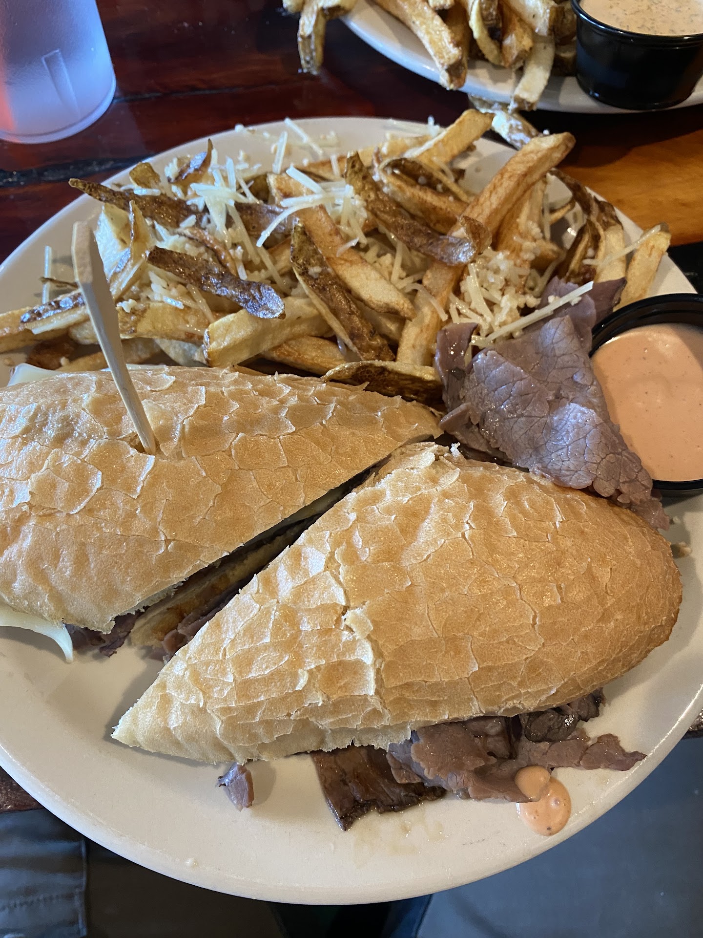 The second time I visited, I ordered a patty melt. The patty was not cooked fresh. Right off the bat, I could taste it was frozen and was completely dry. I agreed to pay to upgrade to Parmesan fries, and regret it. The fries were so soggy... again. I literally sifted through them all to find a crunchy one, but there was none. They were covered with a layer of Parmesan dust that just made them even more so inedible. But my dinner was not as nearly as sad as my companions’. My partner ordered a chicken sandwich, but instead of a breaded chicken breast that you’d expect, they served her frozen chicken patty, that of the consistency of McDonald’s chicken sandwich. Her mom got the soup of the day which was some sort of beef and vegetable soup that was disguised behind some fancy name. But it too, was inedible and it tasted straight out of a Campbell’s can.