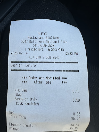 I ended up calling customer service, and to add insult to injury, they would only offer to pay for half of the meal...half. How dang cheap is this company that they can't do the right thing? Well, based on how many terrible experiences people have had at this store, I'd bet on it shutting down at some point. Especially when Chic Fil A is right across the street. The only reason people go to KFC is because it's always packed over there. But at least they do customer service right!!! I will never return to this store, and most likely, won't ever eat...