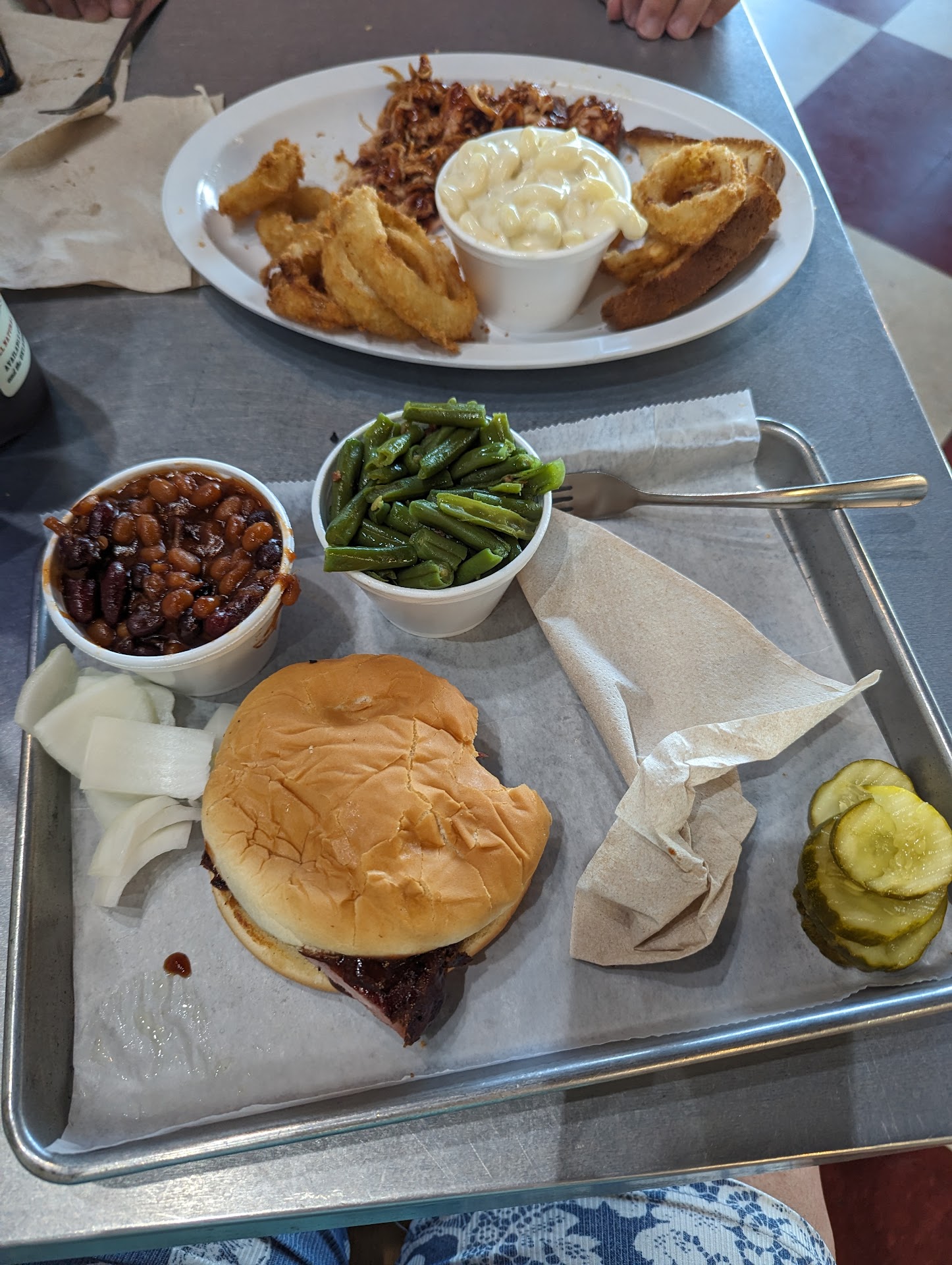 We love baked beans in our house so got a quart along with a baked potato with chopped beef and a couple individual sides and dessert for three to share. Their beans are a combo of regular baked beans, small navy, and what I think are black beans and large kidney beans. The black beans and kidney beans were undercooked and hard. This isn't the first time this happened so I give up on their beans. You can't cook different beans the same amount of time. They would have a good and unique baked bean offering if they could fix the cook time. I mean baked beans with barbecue are a staple.