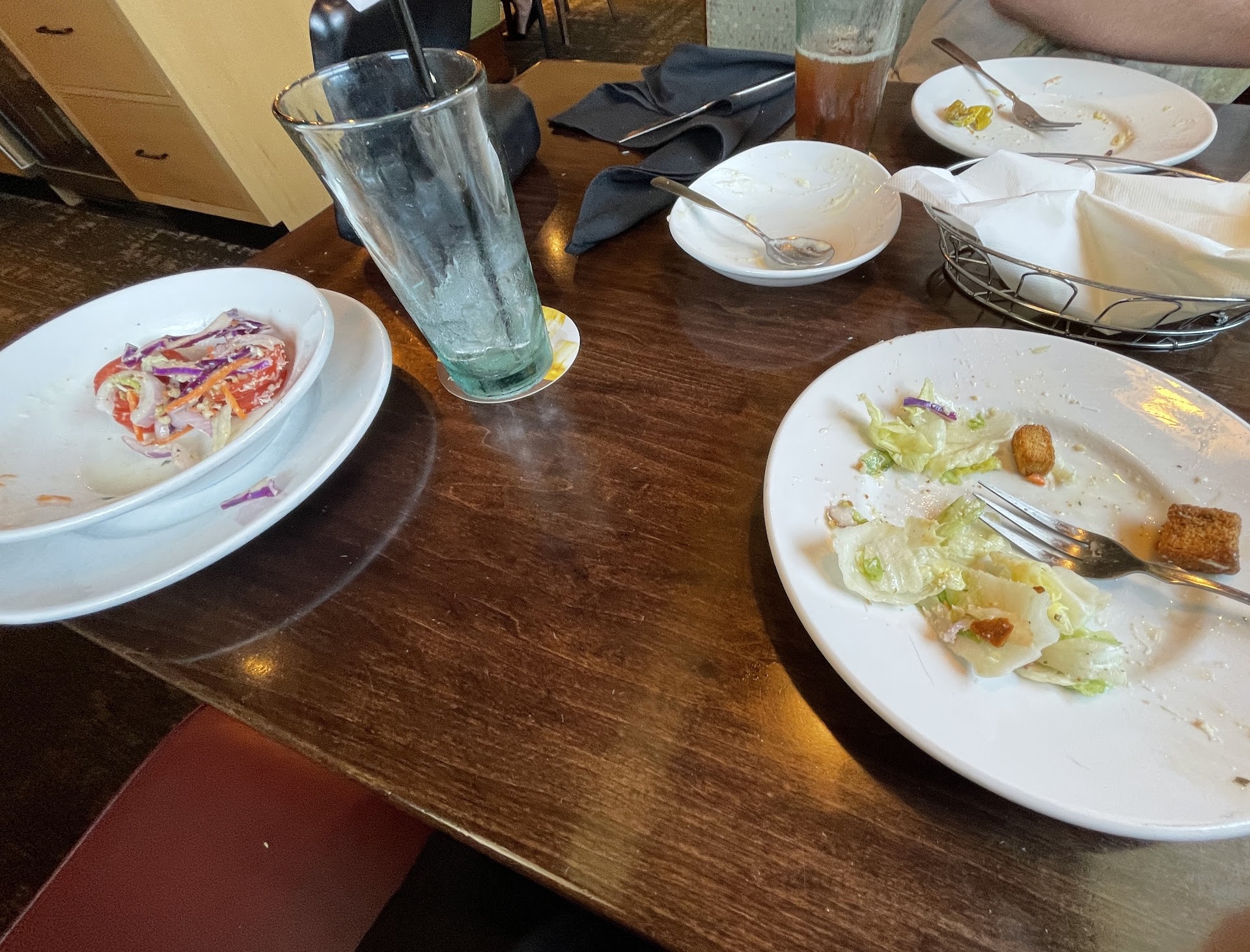 This is where the wheels kind of fell off the bus. It took a while for our food to arrive which is fine, we weren’t in any big hurry. We did run out of drinks not long before the food arrived so we asked the young lady to please tell our server we were ready for a Coke refill and another round of margaritas. No one came. There were what appeared to be 2 hostesses and a different server at the hostess station laughing and playing on their phones. Our server seemed to be running from table to table helping guests but didn’t make it up to us. At least 3 or 4 occasions staff came to chat and visit with the 2 young men across the aisle from us. I don’t know if they worked there and were eating off duty, were the owner’s kids, or what but they and the staff were having a fine time doing everything except serving guests. Finally half way though dinner, my partner carried our glasses up to the bar and the bartender asked if we didn’t want these empty glasses anymore or what to which he replied, “We’d like refills.” A man in a button down shirt brought our drinks back and no sooner had he dropped them off than he went to the fella’s next door and started laughing and talking again. Still our server was running in circles behind us. We finished our dinner and our server brought us boxes after checking on us. As we walked out, the manager had walked to and was the only one at the hostess station. He never looked up. Didn’t say a word. My partner yelled back in to him as we were clearing the first set of doors out for him to have a nice night and we left.