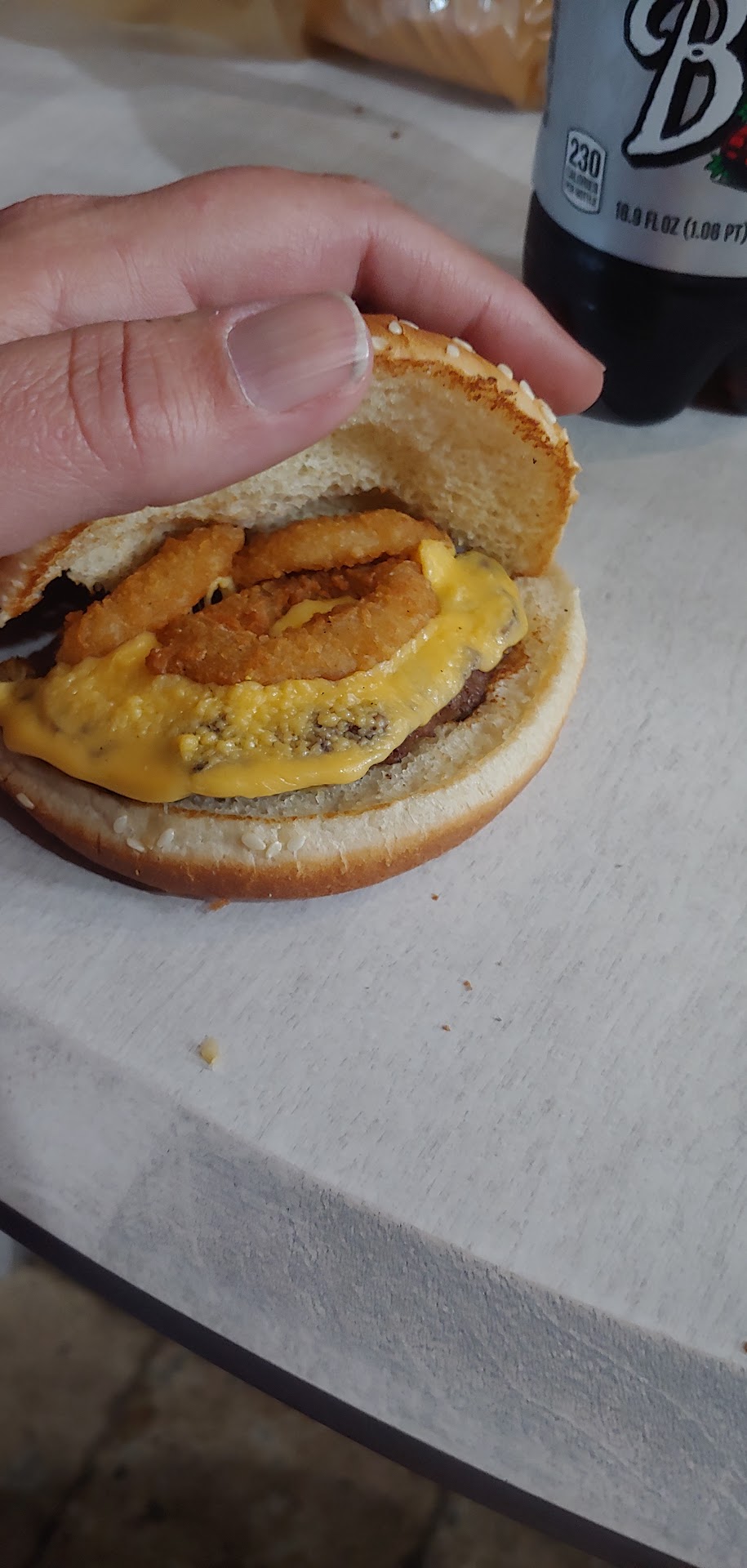 Read moreAfter waiting 28 minutes in the drive through, my daughter found a blue band aid in her junior whopper. Soooooo, we went back to burger Burger King and the manager had 4 band aids on her fingertips on both hands. She told us that she didnt know how the band aid got into my daughters sandwich saying she was wearing gloves. I assured her that if that was indeed the truth, there wouldn't be a nasty disease ridden band aid in my daughter's sandwich. The manager said she had paper cuts on her figure tips hence both of her hands covered in blue band aids. We will not be going here again. All the manager did was return my money which will take several days........ really. I guess ill tell that to the next place of business that my payment for your services will be available in a few days. The young man that took our order in the drive through was very apologetic and insistently answered my question, " so, did anyone happen to loose a band aid ". He said without hesitation, "its got to be my manager ". She also seemed to be very very jittery. My daughter actually ask me if she was tweeking. I told her thats its very obvious that she is on something. So...