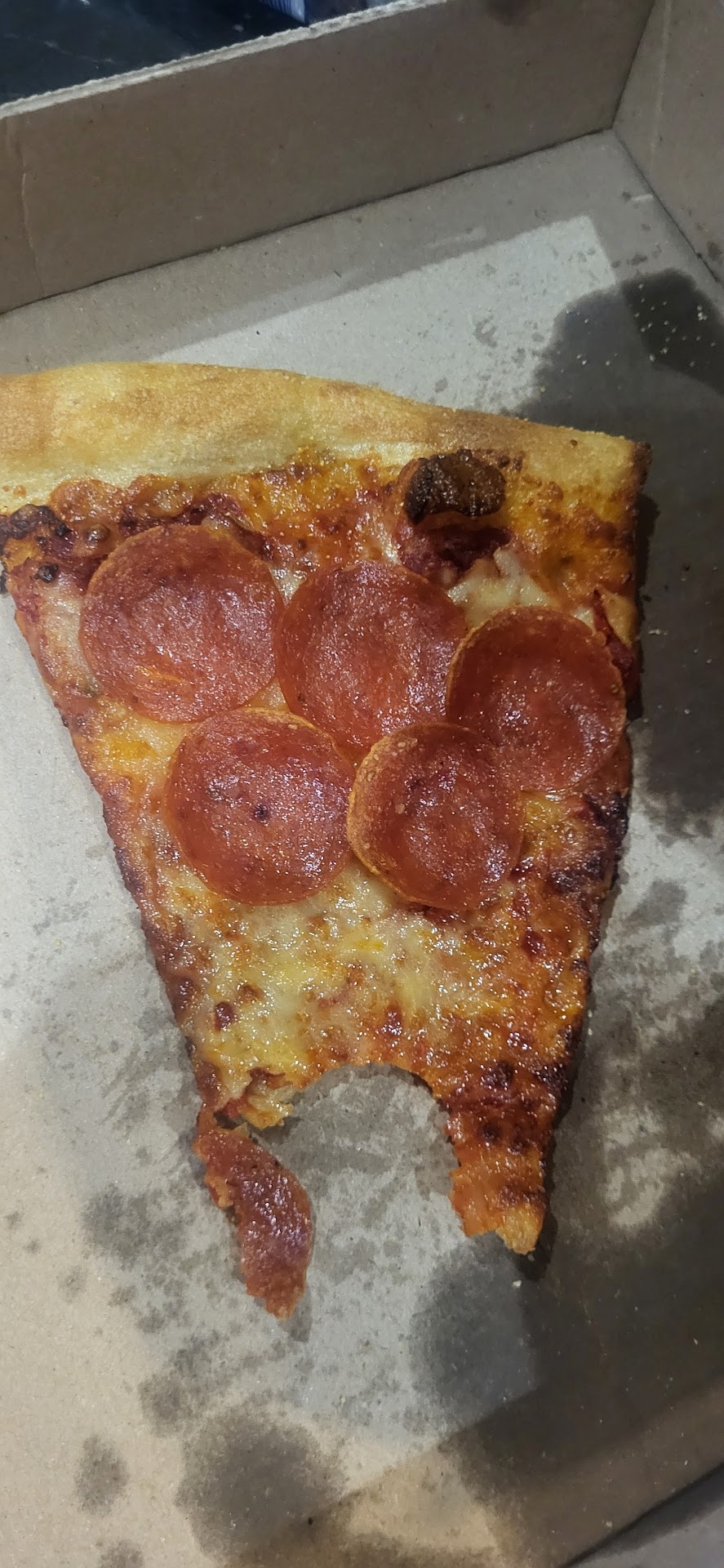 Ā Ā Ā Read moreI got slices here when they first opened and enjoyed them. Yesterday, I ordered a slice of pepperoni pizza to go. The crust was super thin. The grease penetrated all the way through the crust, making it so flimsy that you couldn't pick up the pizza slice without it folding in half. There was also very little cheese, and the slice was smaller than before. Here is the slice after I took one bite of it. I added mozzarella at home (not pictured), so there was more substance. I told a friend about my experience and found out she had almost the identical experience two days earlier- it was her first experience. She said the toppings on her pizza were generous, but she could not pick it up to eat it because the crust would not support the toppings and had to use a fork. We both decided we would take a break and maybe try again in the future to see if the slices return to a normal size and see if the crust gets thicker again. The cashier was very friendly, and the slice came out in about 5 mins. I really wanted to support this local business, I'm disappointed in the product, especially because it's not an...