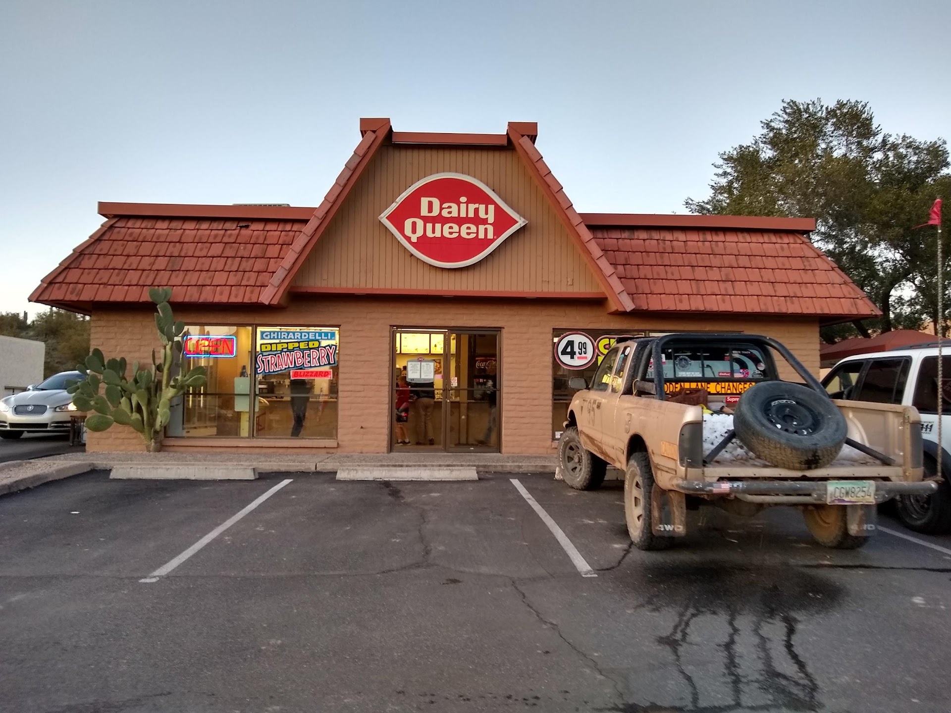 Read moreTypical Dairy Queen, nothing spectacular to note. I will say it's one of the only places around this area where you can get ice cream and food and it has the only drive thru in Cave Creek. If you sit outside be aware that cars park just a few feet from where you are sitting and in the summertime they leave the engine running to keep the air conditioner on so you end up smelling car fumes while you eat, not to mention headlights blinding you. People are so unaware of it too. The workers are always nice, mostly local high school students. The DQ does support the Cave Creek School District with fundraisers so they help...