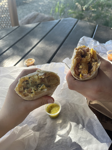 Read moreTwo breakfast burritos. No consistency. One short of egg and cheese but plenty of pico. The other, w xtra cheese, loaded with cheddar (cheddar?) and a middling amount of egg, with little pico. It wasnât bad if you mixed the two together, and scraped off some cheddar. The tortillas were excellent. The red and green âhot saucesâ were tasteless mysteries.