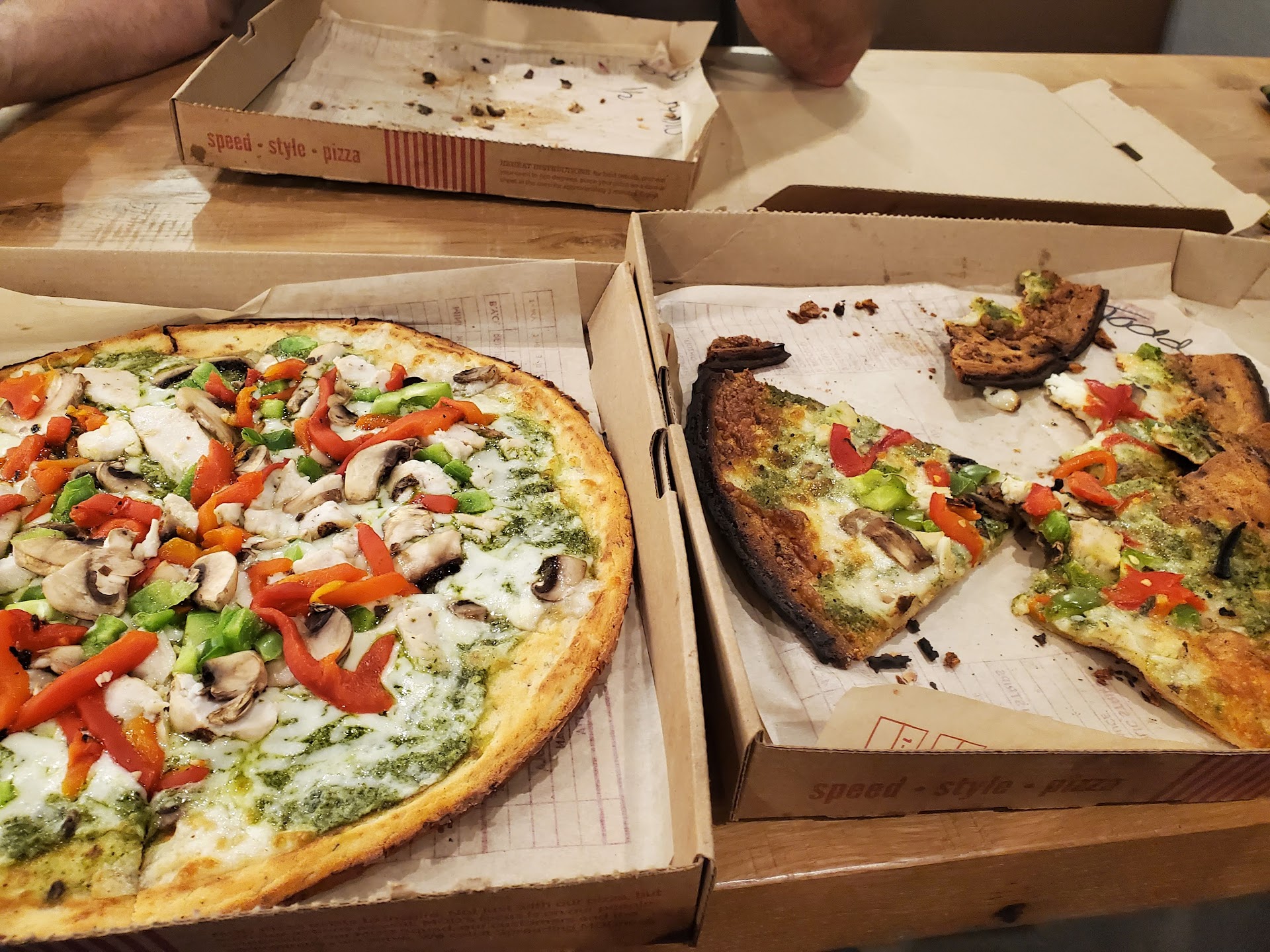 Anyway, it took a few minutes for them to even start taking our order is they had a stack of online orders they were also trying to fill at the same time. We ordered our food, paid with no problems at all and then we waited and waited and waited along with a lot of other people trying to stay distanced but clearly also waiting awhile for their pizza.