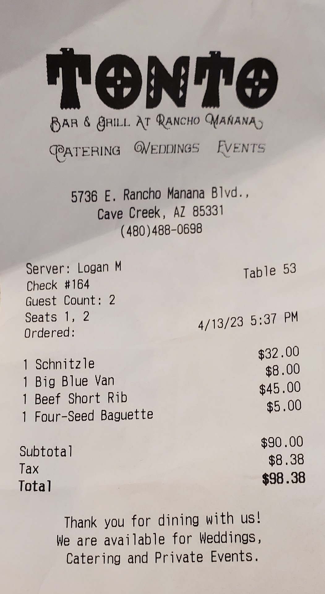 Read moreThis used to be my favorite restaurant in Arizona, and I even posted a 5-star review a little over a year ago. We used to go here for special occasions, usually around the holidays, but sometimes on other occasions. Sadly, I can't say we will be returning. We dined here on December 22nd for a small family gathering. The service was nowhere near the level of excellence it used to be. It was obvious the place was short-staffed. In the past when food was served, it was brought out by 2-3 kitchen staff along with the waiter/waitress. This time, it was just by a lone kitchen staff member and our server was nowhere in sight. We had to wait for the guy to make multiple runs back to the kitchen to get everyone's food out, which was awkward since the ones served had to wait. What's worse, though, is the quality of the food has gone off a cliff. We ordered the usual appetizers (crab cakes, calamari, jalapeno hummus) and they lacked the taste or quality of preparation they did in the past. Hummus was inedible it was so bland. The most glaring issue was a tumbleweed salad I ordered. This has always been a must-have and I've ordered it every time I've eaten here. It didn't have any black beans in it, only a few pieces of chicken, and the lettuce was not fresh at all and it was obviously leftover from the previous day's delivery. (Or, it had been left out all morning at room temperature.) Couldn't finish it after a few bites.