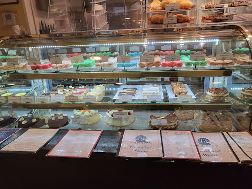 Upon entering, it can be a little confusing if you've never been here before. Daily printed menus are available on a counter in front of a long pastry case at the entrance. The order register is at the end, where you place your order, pay and obtain a number. The option of a tip is also available at this time. Beverage service as well as bussing your table are self service. Our order was brought to the table quickly, according to our numbers, and all our food was absolutely delicious! The lunch menu ranges from full breakfast all day, a variety of coffees to salads, hot and cold sandwiches and melts with many vegetarian options. The hearty quiche servings we ordered were very generous and tasty, with light phyllo dough crust and creamy egg fillings. The tomato basil soup and roasted potato sides were flavorful and nicely seasoned. The caprese chicken wrap was generous with tender chicken, fresh tomatoes, lettuce, mozzerella, and pesto in a warm tomato basil wrap. We had a pleasant sufficiency, and did not order dessert. No service staff came to our table during the meal, and I don't know if this is expected due to the self service nature here. The atmosphere was welcoming, and even though the lunch service was busy, everything seemed to be running smoothly. The most busy time seems to be weekday breakfast or weekend brunch. The self service was a little surprising, but worked well, especially with the busy meal service. Individual and full sized desserts including cakes, pies, and pastries are available at the front case as well as a variety of breads. Outdoor dining is available seasonally, when weather permits. This dining experience was very pleasant, with excellent food and nice surroundings.