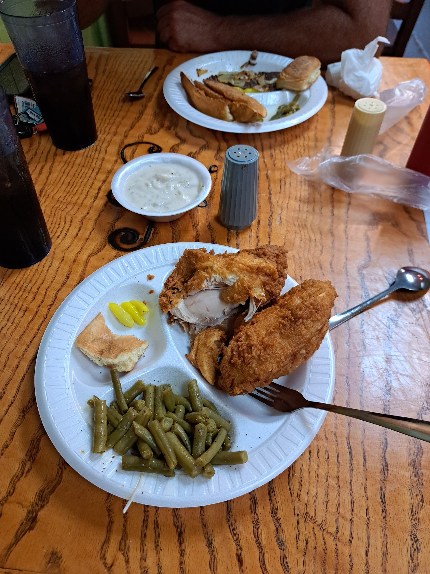 I went in thinking it was a bbq joint...had a hankerin for ribs..the waitress said sorry we don't have ribs, and politely told me where to get them...weeeell l do have a taste for home cooking, and l guess this will do, l ask a few questions on the food, and my appetite changed quickly, l looove good fried chicken, and livers as well..both were there for the picking, lol...So...l ordered them both, with a tea and and 2 vegetables, oh boy ,..the chicken livers were tender as they should be..kudos to to cook, the chicken was out of a story book, tender juicy very flavorful, outstanding..the coleslaw was delicious, not watery just right, the mashed potatoes were whipped to perfection, and at the near end , the waitress ask if l wanted some chocolate pudding, she says..with her head in gesture "Its goood" l said sure she brought everyone there a bowl..NO CHARGE! HOW GREAT IS THAT?, It was also lite n fluffy as a great pudding should be. l gave this small town delicacy a 5 star review all across the board, not just for the food.. but when you're there.. you're not just a customer. You're family , l highly recommend it...l will definitely go back my next trip thru, Not for bbq but for what this place has to offer, great service at a most reasonable price and the food brings me back to my childhood at grandma's, eat up,..you won't be...