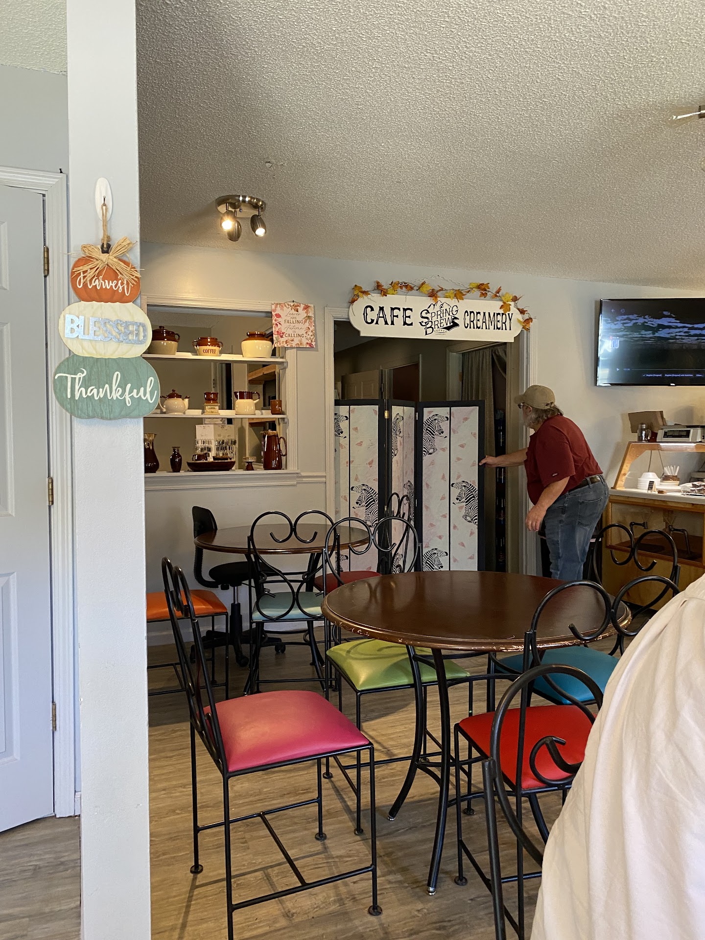 As a new resident of Cave Spring, GA, I have found myself fascinated by these various local businesses. One of them would certainly have to be the Spring Brew Company coffee shop. When you turn the corner onto Alabama Street you can expect to be greeted by a rather pleasant sitting area with both a ramp and stairs leading up to the front doors of this establishment. With a cozy inside, a kind cashier, fresh baked goods, and a neat little antique shop, it is a comfortable place to spend a morning or an evening with some ice cream or a hot drink. Though not a coffee drinker, I can say the Chai latte is rather pleasing. A sweet taste with a rich and smooth texture, while still retaining a bit of the spice from the original chai form of the drink it is rather impressive.