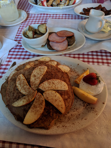 My second time visiting here and again poor experience. Hash Browns were made the night before, cold and hard. Owner is a grumpy unfriendly man who always looks pissed off and should find another job if he doesn't like what he does. The food is not impressive at all, the atmosphere is excellent that's about it. Be warned he adds a 30% tip in if you have a large group and adds it on top of the apple pies you take to go. There is nothing special about this place except its atmosphere and charm, the service and food are below standard. UPDATE: Thank you for your response and I'm glad to see that you read your reviews and take the time to reply. Thank you for correcting me on the server not being an owner. I also agree with you that the fresh fruit and whip cream is a nice touch and the bacon was excellent. However, you are not addressing the fact that your server did charge me 30% tip and also added this tip on top of the apple pie I took to go. You are charging a lot of money for your meals and $28 for a pie plus 30% tip is really excessive. Costco sells excellent Apple Pies for $9.99. I also forgot to state that when I tried to pay by credit card I was told the machine was broken and I could drive down the road to an ATM. I get that you pay fees for CC use but I don't believe the machine was broken and you should tell patrons at the time of check in they need to pay in cash, or call the credit cards in via phone for people who don't have cash or ATM access. In regards to your potatoes your right, I don't know if they were made the night before, but i was the first one in the restaurant at 8am and they were very cold and were surely not just made. My omelette was also burned and blackened. Again, for the prices you are charging I would have expected a much better experience than I received. I also see other reviews on Yelp saying the same thing that they were told CC machine was broken and they were tricked into paying a 48% tip, MULTIPLE REVIEWS sharing the same experience. You obviously have a server who is scamming your customers and targeting people who are leaving and not coming back. He hid the tip in my bill and inflated the tax as well and tried to trick me into paying even more. So instead of defending your business you should be looking into this server and how he treats...