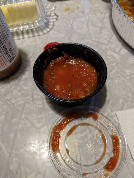 The salsa. It was a hit for me. I love some cilantro in my salsa. Gives it that fresh taste that I love. I give it a 7.5/10. The bowls for the salsa are a bit small. I love big cups of this stuff. I could’ve drank it.