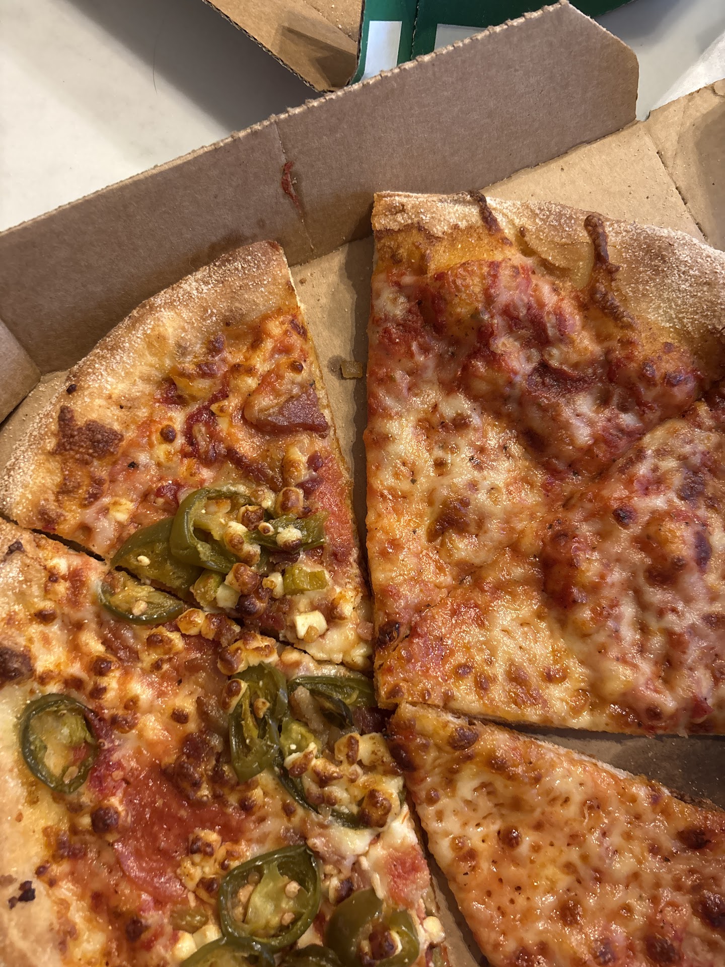 If the order isn't 1.5 hours late, then we are either missing a soda, got the wrong soda, random toppings on the pizza one of us is allergic to, they forget parts of the order and then there's today....