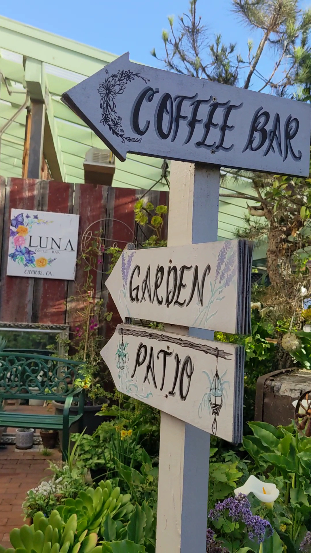 Ā Ā Ā Read moreThis is a really nice coffee shop. We walked up and they have a sign that says follow the yellow brick road. You walk into the building to order your food and drinks, then they bring it out to you. Just be mindful that even though there is a whole big garden only part of that belongs to Luna coffee bar. We sat in the wrong area and we were told that it was not part of Luna coffee bar's property and had to move. I ordered the avocado toast and it was really good I added the egg on top. So some of my videos are of the other property and then I added a video showing where to go to sit to enjoy your coffee and breakfast. Dogs...