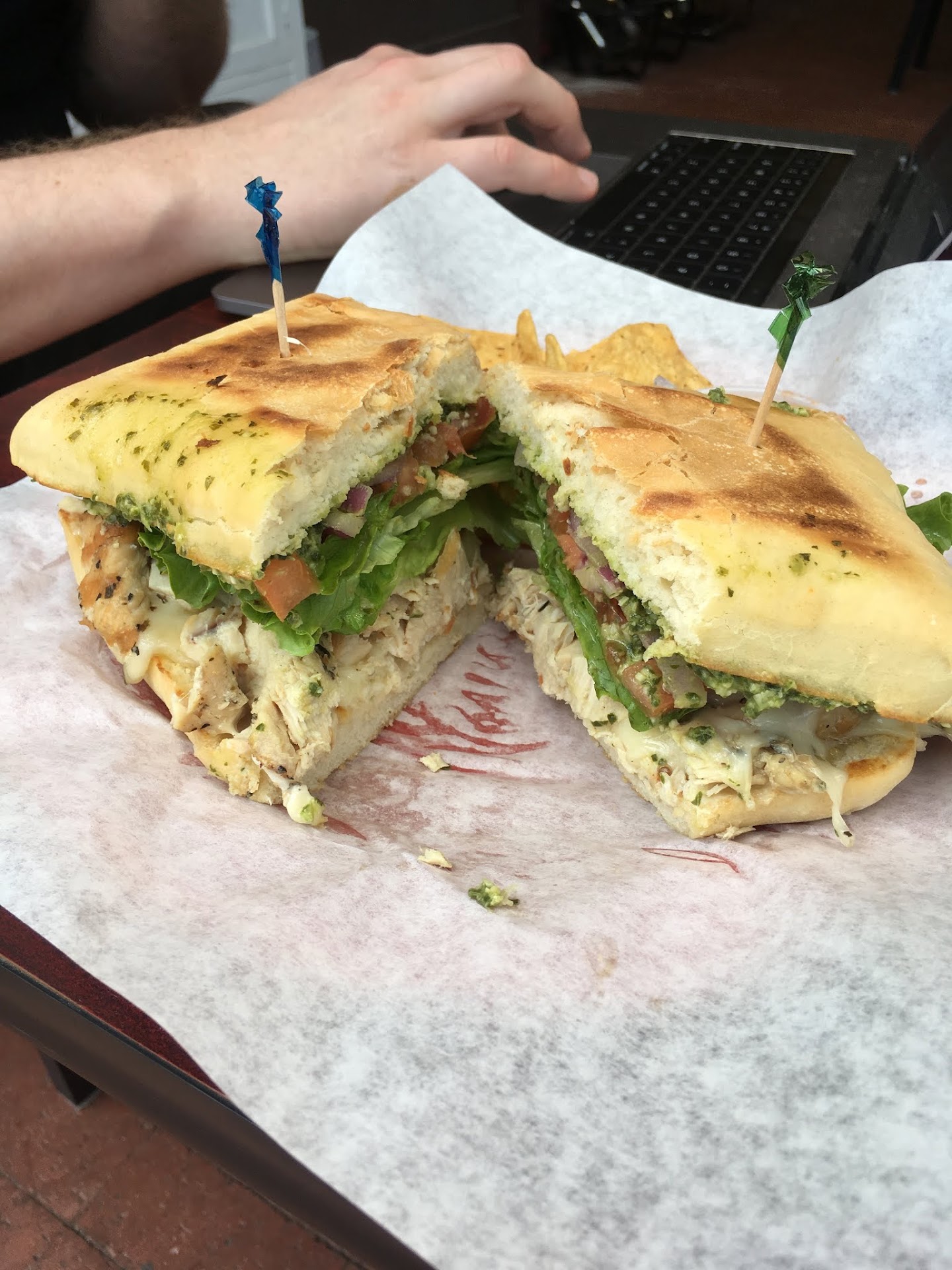 Friendly and upbeat service Great selection of drinks, pastries, desserts, and sandwiches Beautiful, spacious and serene garden patio Lots of seating to accommodate large and small groups Fresh flowers on the tables -- beautiful touch DELICIOUS CHAI TEA LATTE! Restrooms for customers in the back Great place to get work done. Wifi is stable and reliable. There aren't a lot of outlets for charging devices, but there are some in the back patio area where there are fountains plugged in. Delicious BLTA sandwich. Generous amounts of bacon and avocado, and fresh ingredients. Chicken Pesto Ciabatta was also very good! Sandwiches come with a small thing of delicious salsa and some tortilla chips There is parking nearby that wasn't too difficult to find Great, convenient location...walking distance to the beach, lots of shops and local eateries Love all the plants in the garden that attracted...
