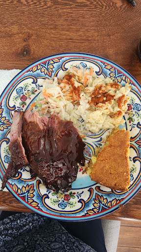 Read moreBarbecue done right!! Perfectly smoked and not overpowering baby back ribs that fall off the bone and the sauce is savory, sweet and just right!!! All the sides are homemade, fresh daily from the mac and cheese and baked beans to the coleslaw and macaroni salad. This Mom and Pop establishment will have you coming back again and again. Most friendly down-to-earth humbled couple, you could ever want to meet! Try it and you will be hooked. Whole wings done to perfection, beer battered fried fish on Fridays and the brisket chili is a must to try. Prices are more than reasonable and the portions are oversized! I ordered a 1/2 rack of baby back ribs. A side of hand cut fresh, made creamy coleslaw and a side of macaroni salad and don't forget the slightly sweet homemade cornbread baked in a cast iron skillet with golden crust. Pictured is half of what I ordered, which was way filling and had the other half for another complete meal the next...