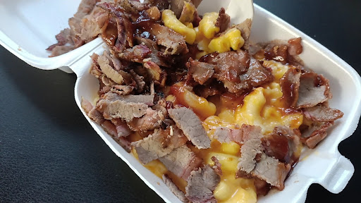 Read moreThe gentleman that runs this establishment was both our cook and our server. We enjoyed his demeanor. However.. the woman who was to be taking our order and waiting on us.. seemed absent minded and preferred to be on the phone. The pulled pork and the pulled chicken was delicious. The Mac and cheese was tasteless, the cornbread on top was good part of that. The deviled egg macaroni salad was TERRIBLE, which is the saddest part.. that's the reason I even chose to go to this tiny lil bbq shack. There was no notable flavors of a deviled egg. Bland and room temp even after watching her pull it straight from their vintage cold case. They definitely need more drink options and supply. I asked for ice water and was given the last bottle of water they had. He got a can of soda. Over all.. for the price of everything.. it was NOT worth...