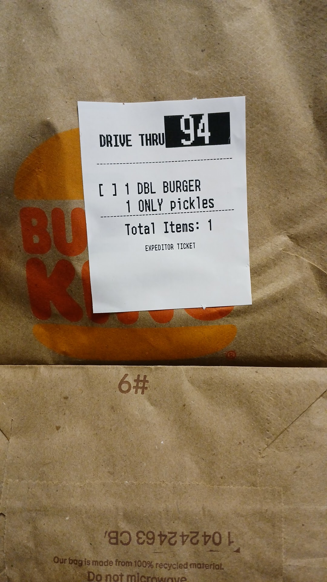 Let's start with the honest truth of the matter. The only reason I found myself eating here today was because the Wendy's drive through was to the street and BK only had one car in theirs. After deciding to have an adventure for my tiny lunch break and try something different. I have to say I found myself quite impressed. The lady who took my order was patient as I struggled to read the menu. The drive up menu changes while you are reading it which is annoying. No reason to advertise bk to me when I'm ordering bk. Somebody in marketing needs to be fired for that nonsense. That aside the staff was fast nice and professional. But the important stuff is the food... Like a regular tight wad today I swung for the dollar ish menu. I picked up a regular cheese burger, a rodeo burger, and a spicy chicken burger. 1st the cheese burger. A solid meh Honestly for a buck all I can hope for is that the components are actually there and inside two buns... Unlike some places that share my last name... The burger had it's classic bk flavor. It was nothing to write home about but it delivered. 2nd up the rodeo burger. If you are like me and have no clue what that is. It's a regular burger with the cutest little onion ring you have ever seen with BBQ sauce. Honestly impressed with the flavor provided by this combination. Could use an actual onion ring and about double the sauce. What would really make that an impressive little burger would be a slice of cheese. If I were to do again and I prob would I'd add a slice of cheese. 3 the spicy chicken burger... I know that bk was all about there burgers and classic grill flavor and blah blah blah. But we all need to pump the brakes on that way of thinking. The chicken burger stole the show today. The first bite in was not only a surprise but encouraging a tongue tango. The flavor was exciting the chicken was magically tender while the outside was crisp and the sauce that goes with it pulls the entire thing together. Well played BK. Wendy's might have lost a loyal...
