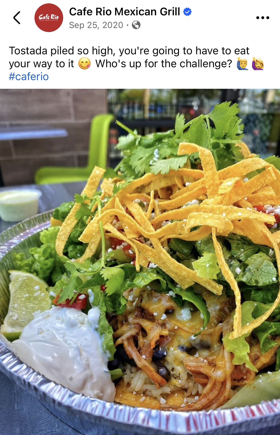 Read more4-22-21 TEN STARS for today’s visit I got a steak salad and a cheese quesadilla Everything was fresh and tasty, my steak was really good, juicy and delish. Decent size portion. Most importantly the staff was very friendly and professional. Fast service, no wait time. I guess I will have to skip them on weekends. 3-21-21 VERY DISAPPOINTED 👎🏻👎🏻 Skimpy on steak ! Out of guacamole and tortilla cheese! LOUSY service. It took me 20+ minutes to order even though there were just 3 people in front of me. VERY LOUD music, it’s already hard to communicate with the team members due to masks and those plastic screens they had installed. You have to over-scream the loud music on top that... Just one star cause the ingredients were fresh. 01-16-21 ☆ ☆ ☆ ☆ ☆ ☆ ☆ ☆ ☆ ☆ One of the best Cafe Rios ! 🤩🤩 I come here every other week and always leave satisfied. Tasty meals, fresh ingredients, fast and friendly service. Thank you guys for being awesome ! 10-28-20 ☆ ☆ ☆ ☆ ☆ Dine in ☆ ☆ ☆ ☆ ☆ Got a great steak salad bowl 👍🏻👍🏻 Tasty, the steak just came from the grill, juicy and flavorful. All salad ingredients were fresh. Good job. The team members are really customer oriented. The portions are decent size. 10-03-20 * to go * ☆ ☆ ☆ Still fresh ingredients(lettuce and pico de gayo) but skimpy on meat, both grilled chicken and steak. The chicken was also over-grilled 9-25-20 * Dine in * ☆ ☆ ☆ ☆ ☆ They are doing so much better now. Firm 5 stars. Decent size portions, fresh ingredients, quick and friendly service. Kudos to the team members and management. Recommending and will be...