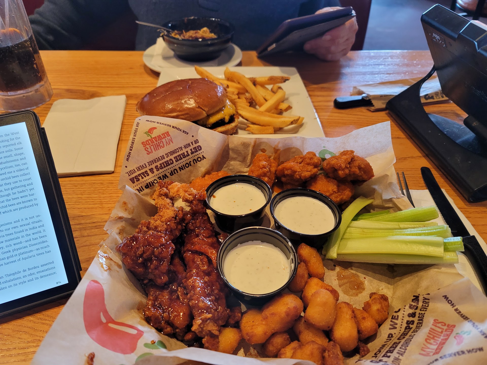Ā Ā Ā Read moreI love Chili's food. I'm a boneless buffalo wings fan for life (I'm lazy, I just want to put it in my mouth, enjoy it, and be done with it, instead of cleaning off my face or disposing of a bone). Not just the BBWs but I enjoy their atmosphere and their food a lot as well. If you ask my wife where I pick to go on dates, chances are it's here (until a Buffalo Wild Wings comes to town #sorrywingers).