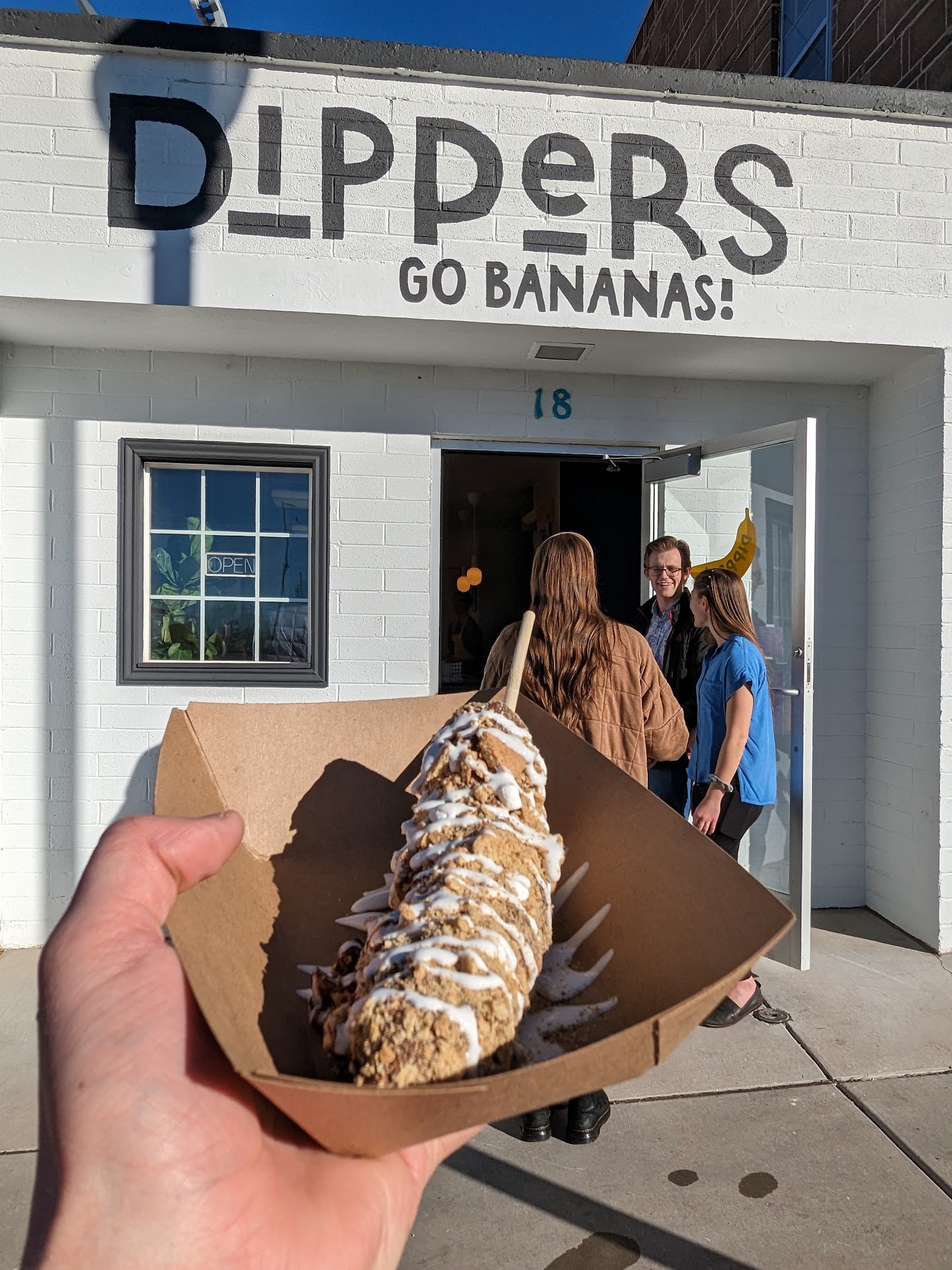 Read moreLove love LOVE this little shop! I've been supporting them since they started doing the local farmers market and I'm so proud to see how much they've done in such a short time. The ambiance inside the shop is cozy and fun, and the food is great and cheap. The chocolate shell on the banana has this perfect crunch that is sooooo satisfying and the banana bread is perfectly moist! 10/10, absolutely my favorite...