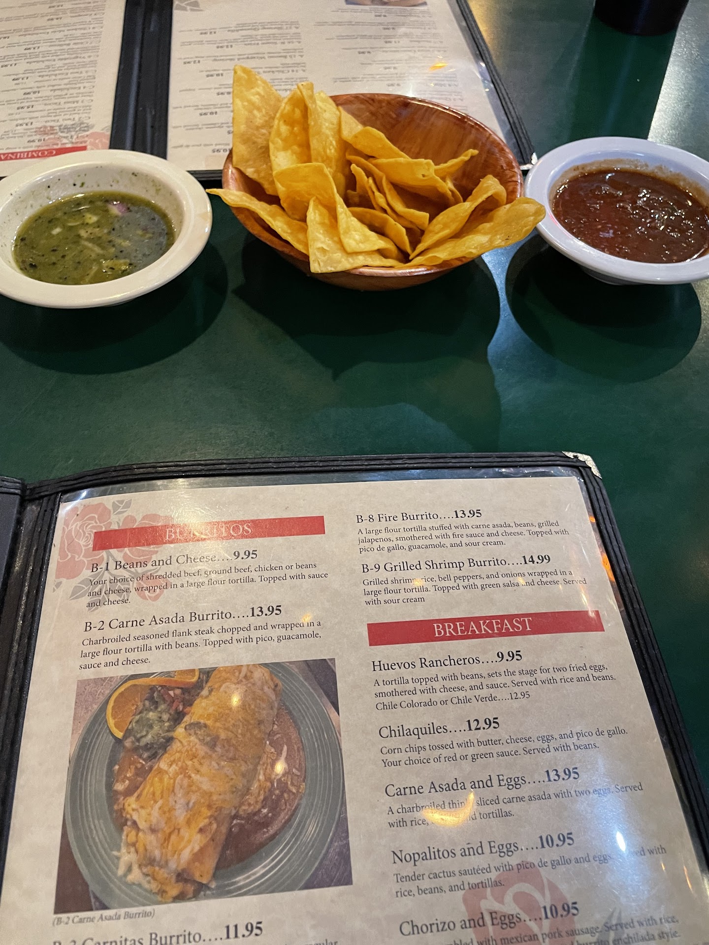 Food notes: good enchilada gravy, well prepared and flavorful shredded beef, good salsa and sauces, and good chips. Everything was good and it all came together well. The above mentioned are just the high notes.