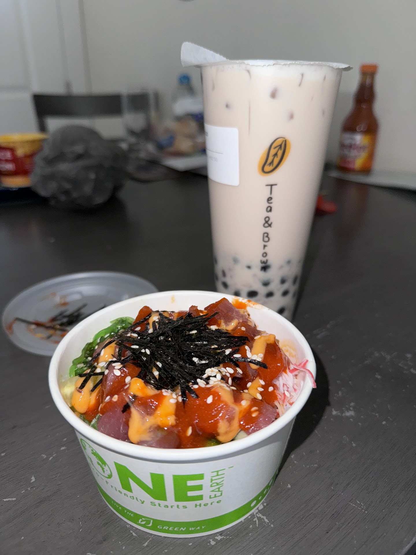 I did a take out delivery and had high expectations for this place but I didn’t like how the food tasted nor did I like my boba tea. I asked for a taro boba milk tea drink and it didn’t taste like that nor did it look like a purple taro drink. I had to throw it away since I disliked the taste which was a waste of $6. I got a poke bowl too from here in a kids size and it was not what I expected. I don’t even think they use sushi rice in the bowl and just used regular white rice which didn’t make the tasting experience better and the tuna that I added as a protein tasted a bit frozen. The topping was alright but I definitely had better like when I go to Domoishi back at home it’s really worth it and by comparing that company to this one. I don’t think they are on the same level at all. I was so excited to try this place out and after doing it I will not be...
