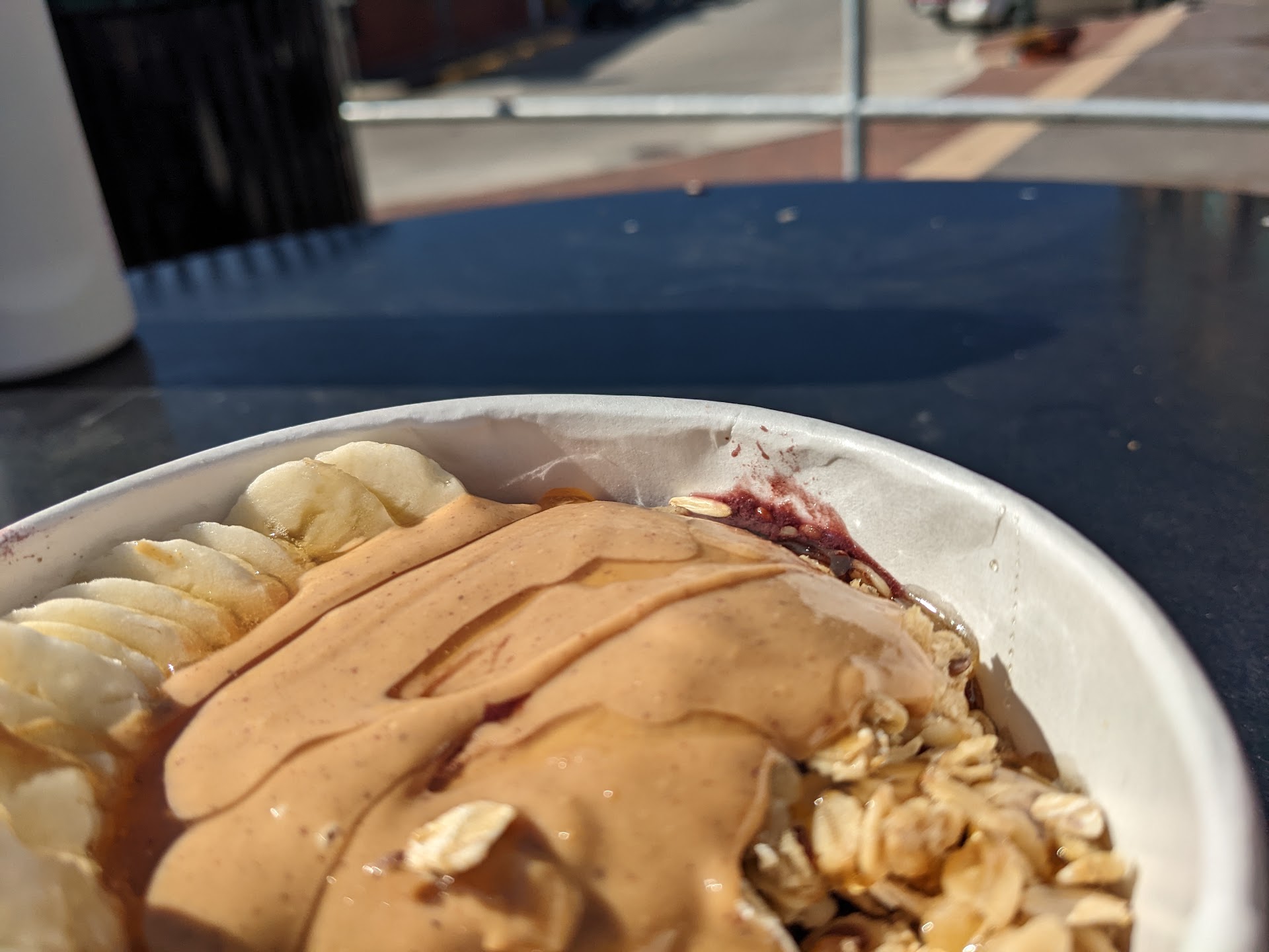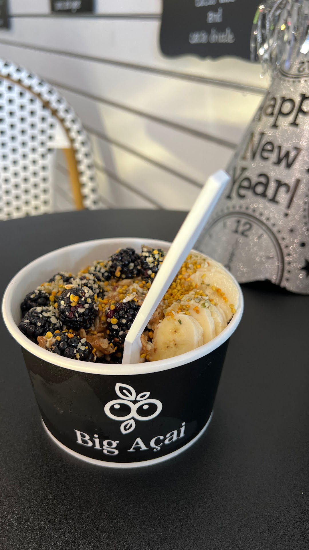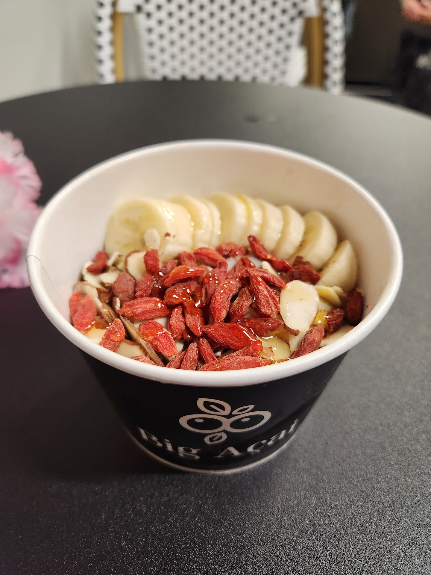 Read moreThis is a wonderful place to eat and drink! My friend and I tried Big Acai for the first time today. She had oatmeal as her base and a PB&J with strawberry smoothie. I initially got the acai power bowl with granola and banana and kiwi and cacao nubs. The server was also so kind to offer me a sample of the smoothie. I enjoyed it so much that I ordered a smoothie for myself (I had to try the tropical smoothie!). Everything was so delicious! And the power bowl was so filling!! It was filled to the top and bursting with flavor!! The tropical smoothie was also amazing!! The service was terrific and everyone was very friendly and helpful! Will definitely be back to try more acai bowls (with different toppings) and more smoothies!! Absolutely recommend this...