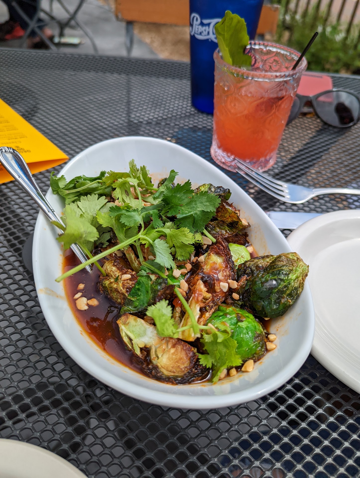 Read moreWe stopped here for lunch and got the brussel sprouts for an appetizer. I ordered the Cobb salad and my friend ordered the house flatbread. Initially the experience started out very good. The waitress was nice, took our drink order. However, from there, it started to go downhill. The waitress took our appetizer order, then proceeded to ask us how the Brussels were 30 seconds after they came to the table. We then ordered our entrees. Again, she asked how our food was 30 seconds after our food came. I had requested an extra side of ranch for my salad as the one that came with it was very small for a full size salad. It never came and the waitress stopped coming to check on us . After about 15 minutes of waiting, we starting trying to flag down our waitress with very little success. It took us about 7 minutes to finally get her attention. I waited another 10 minutes for the side of ranch. She only asked about drinks once and only refilled out water once, when requested it and only my friends water as she was the one that asked. And just as reference, the waitress only had 6 tables, all with 2 people so it wasn't like she was slammed busy. The brussels were good, with just a bit of heat. The flatbread was mediocre at best. It looked like frozen preformed dough, tiny amount of sauce and looked like cheese slices on the top. The salad was good sized but the crispy chicken was sparse and very dry. It looked like it had been sitting under a heat lamp all day. The cucumber slices were so thin you could literally see through them. The other toppings were sparse as well. Overall, I was not, sm not impressed with this place. The service was poor, the food was mediocre at best, and the drinks overpriced for what you get. I don't mind paying 10 bucks for a margarita but expect more than an 8 or 10 ounce glass full of ice. I will not be frequenting this establishment due to the poor service, high prices of mediocre food and over priced drinks. I would not recommend this place when right across the street is a much better place for food, whiskey river which I do frequent when I'm in the area. Or up the...