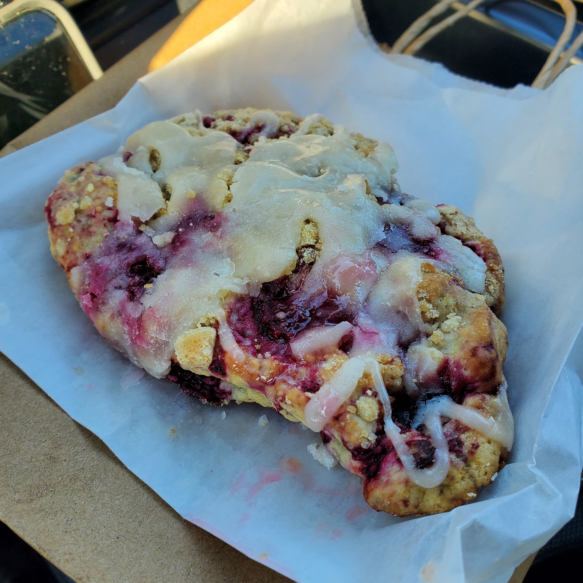Due to a health issue, it's a big plus that they are vegan! I can finally enjoy some sweet treats. We stopped on another visit and got the strawberry/rhubarb scone(warm,flavorful) and the chocolate/raspberry cheesecake(divine!)đ They are so...