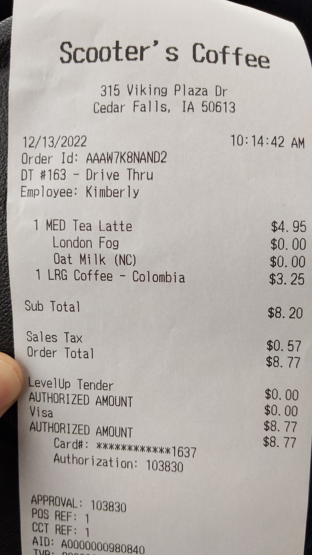 Read moreEverytime i go through the drive thru the service and the drink are so inconsistent in flavor. Its been 2-3 times now that ive ordered and been so unhappy. If i pay $6 and upwards for a “small” drink i should be happy with it. I ordered a small iced caramel latte. When i tell them its too sweet and doesnt taste like coffee much, they say well thats how it is and that they added “two” shots of espresso. Be for real. This looks and tastes like mostly milk. I hate that i paid $6 for this. I only get coffee to treat myself and im...