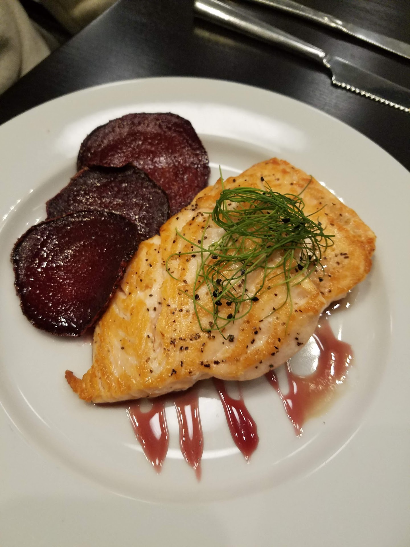 So, the location is different. The lights could be dimmed a bit more, it was very bright. Started with well put together martinis. Dinner came with bread and a few butter spreads that were very good. Salads were very fresh. The main course, I had the duck breast and my wife the salmon. The cuts were cooked perfectly and very flavorful sauces to accompany them. The chef delivered the mains himself. The service was a bit thin, I think due to a large wedding, I would have contemplated four stars for this, however the chef brought out a cypress plate on the house. I absolutely think this was the highlight of my week. It was a flavor explosion of local sources we were not expecting. Overall, the price was on-point and the experience...