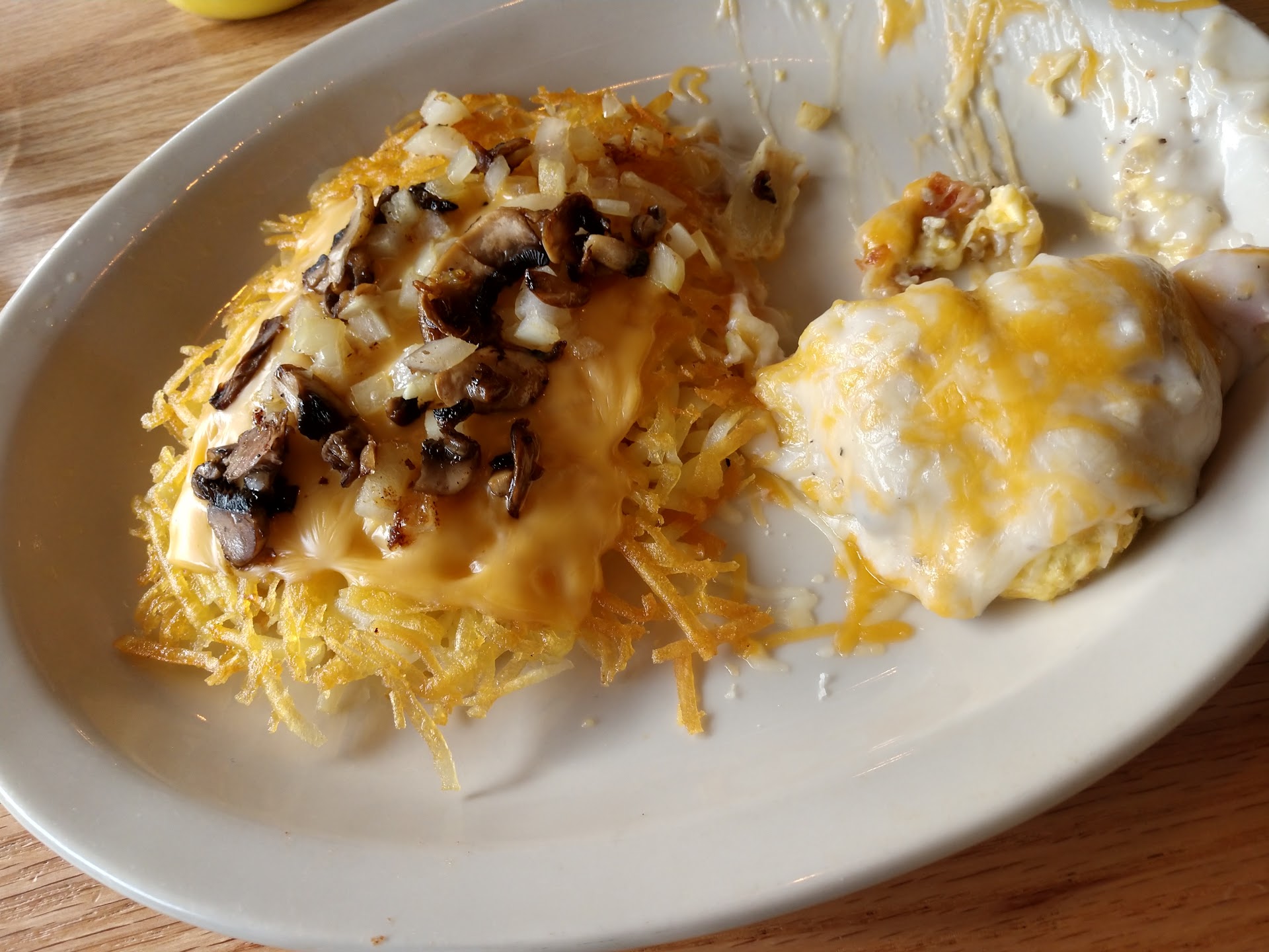 As to the food... I got a skillet and the pan was more than half empty. My gfs pancakes were cold. Only I got coffee yet I didn't have enough creamer OR sugar for our visit and as the waiter never once checked on us we couldn't ask for anything...