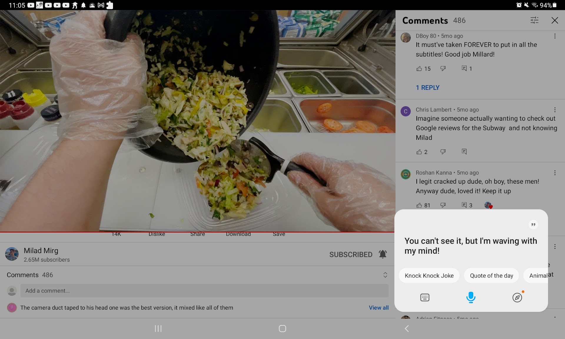 Read moreA few days ago i was chilling at my house on mars, then all of a sudden i got a powerful urge to go eat at a Subway. We dont have Subways on mars, so it was very peculiar. I brushed it off and didnt think about it, until i got another urge to go to Subway. I was thinking “i have to go to Subway immediately!!”. I got in my rocket and flew all the way to Earth. My tracker was pointing me towards a Subway in New Jersey, and at the time i had never heard of New Jersey before. I landed in parking lot of the subway, and everyone around me started running away and panicking. I couldn’t figure out why until i realized i had just landed a massive space ship in the driveway of the Subway. I walked inside and the only person who was in there was a fine fellow named Milad. (All the customers and employees ran out when i landed) i walked up to the counter and he asked what he could do for me. I said to him, “lemme get the usual”. The thing is, ive never been to this Subway before, let alone any Subway at all, so i have absolutely no idea why i said that, but Milad seemed to know exactly what to make for me. I saw him rush to get some bread, he rushed over to the meatballs, he rushed over to the cheese, then toasted it in the oven. He did it all so fast but he put each ingredient on with such precision. I was impressed by his speed, and he handed me the sandwich and said, “don’t forget your free cookie!”, and he handed me a free cookie. My favorite meal is mars dust bread with asteroid meatballs, and he made me a meatball sub. I have no idea now he knew what my favorite sub was, but he did. I moved to earth after that, and now i go to Milad’s Subway ever single day....