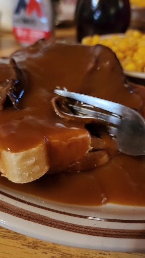 Read moreWell. I have eaten on restaurants all over the world, and I should know better by now. Stick to the basics and do not listen to suggestions. While spending the week in Duck Creek Village Utah, we decided to take the family of five out to celebrate our 52nd anniversary. There are not a lot of options in this area, so based on reviews, we picked Aunt Sue's Chalet. Not our best decision. The place is old and decorated in country style but from 40 years ago including a full lit Christmas village. Seated at two tables versus the available large booth in the back, we ordered per recommendations from the very friendly waitress. Chicken fried steak and baked potato. Fried chicken dinner, hamburger, and an open faced beef sandwich. We also ordered fried mushrooms and green beans. The dinners came with the salad bar, which was very good with an abundance of toppings and dressings. Really the highlight of my dinner. The mushrooms came and were frozen inside. So much for homemade. The waitress quickly fixed this, and both were decent for bulk frozen products. The hamburger was excellent. A handmade patty cooked perfectly with crispy fries. The fried chicken came and was very good. Crispy and not greasy at all. The recommended mashed potatoes, however, came from a box and were bland and tasteless. Now the downside. My chicken fried steak was really a chicken fried hamburger patty smothered with canned gravy. Awful. The baked potato was obviously cooked this morning and reheated to a warmish/cold state that would not even melt the small ball of butter provided on the side. Almost inedible. The hot, open faced beef sandwich was comprised of packaged thinly sliced beef products on white bread smothered with canned beef gravy. The beef had a rubbery chewy consistency of cheap packed slice beef products. Truly aweful. The people were nice. Plenty of parking. Order the burger or fried chicken and forget the rest. Not...