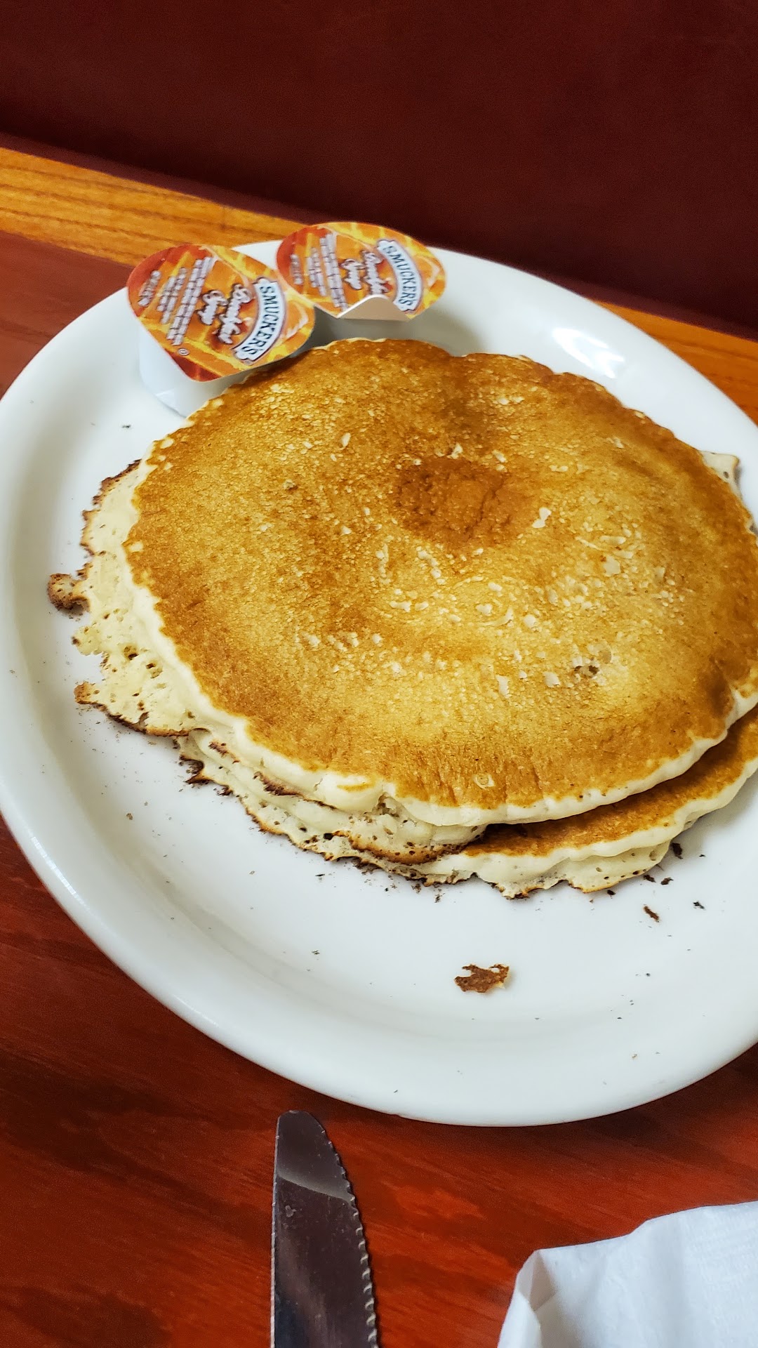 Found this hidden gem one morning after church. The inside is way bigger and nicer than what it looks like outside (it's attached to a car shop). It was the weekend and they had Menudo for breakfast; con pata if you wanted. It tasted better than other places we have tried, but we have had better. This one was just a tad bit better than mediocre. The pancakes were very fluffy and delicious!! I ordered 2 but 1 would of had been better. I couldn't finish the 2. They were big and thick! We tasted a Barbacoa taco and it was OK. The flour tortillas used were better than most places. The corn tortillas not so much. We also tried the Migas plate. The potatoes were cooked to perfection! When they serve up the big chunky potatoes they're almost always on the hard side. These were perfectly soft but didn't fall apart; a very hard thing to do. The beans were good as well, but the Migas we're a bit flavorless. Maybe using different chips might help. They weren't that good. They were the least favorite thing we tasted. The service was great and the bathrooms looked freshly renovated and were nice and clean. The restaurant had 4 large screens where you could either watch the news, a soccer game, or a concert. You walk in and sit where you like. When you're done you go to the cash register and pay on your way out (not at the table). The place had an inviting and relaxed feel to it. We will be back to try other items...