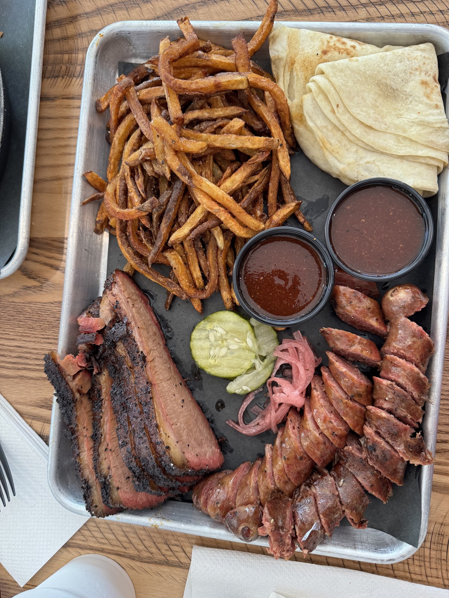 The barbecue ribs were tender with a slightly sweet finish that we really enjoyed. The sausage had a decent amount of flavor—solid and satisfying, though not particularly bold. The brisket was moist and tender, paired with a sauce that seemed to be a blend of vinegar-based barbecue and ketchup. It wasn’t bad at all, but if you’re someone who leans toward more robust flavors, places like Spring Creek might have a slight edge in terms of seasoning and depth. Still, Mija holds its own.